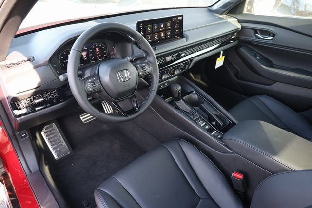 Radiant Red 2025 Honda Accord Hybrid 4D Sedan Sport-L FWD eCVT 2.0L I4 DOHC 16V