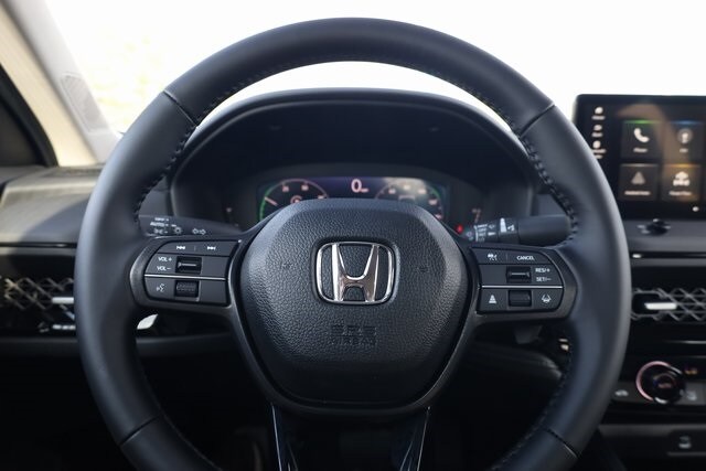 This Accord Hybrid is well equipped with 2.0L I4 DOHC 16V, 4-Wheel Disc Brakes, 8 Speakers, ABS brakes, Adaptive Cruise Control: Adaptive Cruise Control (ACC) with Low-Speed Follow, Air Conditioning, Alloy wheels, AM/FM radio, Apple CarPlay/Android Auto, Auto High-beam Headlights, Auto-dimming Rear-View mirror, Automatic temperature control, Blind Spot Information (BSI) System warning, Brake assist, Bumpers: body-color, Compass, Delay-off headlights, Driver door bin, Driver vanity mirror, Dual front impact airbags, Dual front side impact airbags, Electronic Stability Control, Emergency communication system: HondaLink, Exterior Parking Camera Rear, Four wheel independent suspension, Front anti-roll bar, Front Bucket Seats, Front Center Armrest, Front dual zone A/C, Front reading lights, Fully automatic headlights, Heated door mirrors, Heated Front Bucket Seats, Heated front seats, Illuminated entry, Knee airbag, Lane departure: Lane Keeping Assist System (LKAS) active, Leather Shift Knob, Leather steering wheel, Leather-Trimmed Seat Trim, Low tire pressure warning, Memory seat, Occupant sensing airbag, Outside temperature display, Overhead airbag, Overhead console, Panic alarm, Passenger door bin, Passenger vanity mirror, Power door mirrors, Power driver seat, Power moonroof, Power passenger seat, Power steering, Power windows, Radio data system, Radio: 180-Watt Audio System, Rear anti-roll bar, Rear reading lights, Rear seat center armrest, Rear side impact airbag, Rear window defroster, Remote keyless entry, Security system, Speed control, Speed-sensing steering, Speed-Sensitive Wipers, Split folding rear seat, Steering wheel mounted audio controls, Telescoping steering wheel, Tilt steering wheel, Traction control, Trip computer, Turn signal indicator mirrors, Variably intermittent wipers, and Wheels: 17" x 7.5J Pewter Gray.