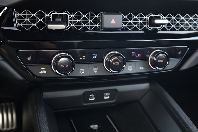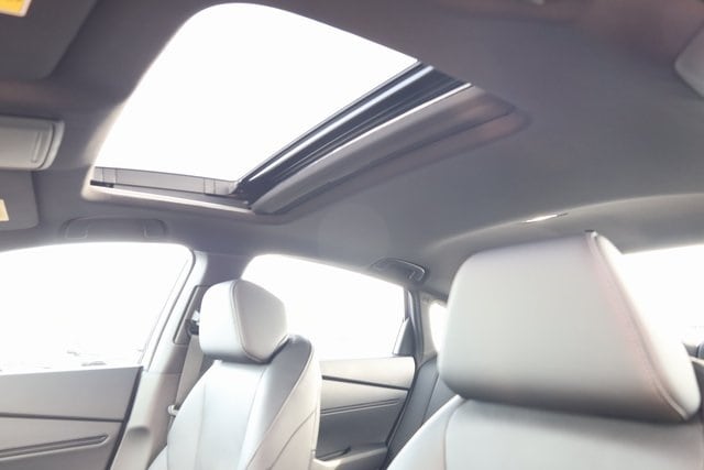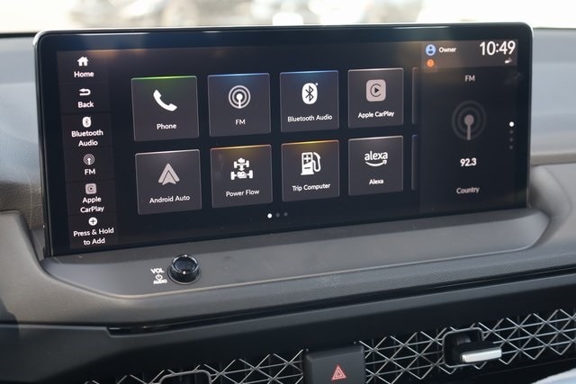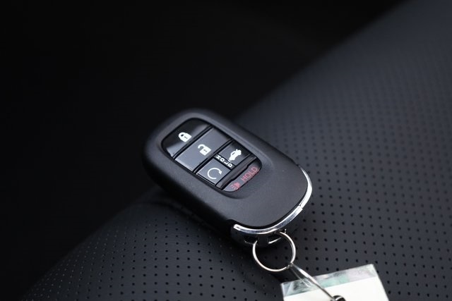 This Accord Hybrid is well equipped with 2.0L I4 DOHC 16V, 4-Wheel Disc Brakes, 8 Speakers, ABS brakes, Adaptive Cruise Control: Adaptive Cruise Control (ACC) with Low-Speed Follow, Air Conditioning, Alloy wheels, AM/FM radio, Apple CarPlay/Android Auto, Auto High-beam Headlights, Automatic temperature control, Blind Spot Information (BSI) System warning, Brake assist, Bumpers: body-color, Compass, Delay-off headlights, Driver door bin, Driver vanity mirror, Dual front impact airbags, Dual front side impact airbags, Electronic Stability Control, Emergency communication system: HondaLink, Exterior Parking Camera Rear, Four wheel independent suspension, Front anti-roll bar, Front Bucket Seats, Front Center Armrest, Front dual zone A/C, Front reading lights, Fully automatic headlights, Heated Front Bucket Seats, Heated front seats, Illuminated entry, Knee airbag, Lane departure: Lane Keeping Assist System (LKAS) active, Leather Shift Knob, Leather steering wheel, Leather-Trimmed Seat Trim, Low tire pressure warning, Memory seat, Occupant sensing airbag, Outside temperature display, Overhead airbag, Overhead console, Panic alarm, Passenger door bin, Passenger vanity mirror, Power door mirrors, Power driver seat, Power moonroof, Power passenger seat, Power steering, Power windows, Radio data system, Radio: 180-Watt Audio System, Rear anti-roll bar, Rear reading lights, Rear seat center armrest, Rear side impact airbag, Rear window defroster, Remote keyless entry, Security system, Speed control, Speed-sensing steering, Speed-Sensitive Wipers, Split folding rear seat, Spoiler, Steering wheel mounted audio controls, Telescoping steering wheel, Tilt steering wheel, Traction control, Trip computer, Variably intermittent wipers, and Wheels: 19" x 8.5J Matte Berlina Black.