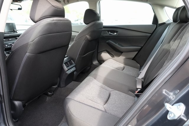 This Accord is well equipped with Nh-904m/Black Cloth, 4-Wheel Disc Brakes, 8 Speakers, ABS brakes, Adaptive Cruise Control: Adaptive Cruise Control (ACC) with Low-Speed Follow, Air Conditioning, Alloy wheels, AM/FM radio, Apple CarPlay/Android Auto, Auto High-beam Headlights, Automatic temperature control, Blind Spot Information (BSI) System warning, Brake assist, Bumpers: body-color, Compass, Delay-off headlights, Driver door bin, Driver vanity mirror, Dual front impact airbags, Dual front side impact airbags, Electronic Stability Control, Emergency communication system: HondaLink Assist, Exterior Parking Camera Rear, Fabric Seat Trim, Four wheel independent suspension, Front anti-roll bar, Front Bucket Seats, Front Center Armrest, Front dual zone A/C, Front reading lights, Fully automatic headlights, Heated door mirrors, Heated Front Bucket Seats, Heated front seats, Illuminated entry, Knee airbag, Lane departure: Lane Keeping Assist System (LKAS) active, Low tire pressure warning, Occupant sensing airbag, Outside temperature display, Overhead airbag, Overhead console, Panic alarm, Passenger door bin, Passenger vanity mirror, Power door mirrors, Power driver seat, Power moonroof, Power steering, Power windows, Radio data system, Radio: 180-Watt Audio System, Rear anti-roll bar, Rear reading lights, Rear seat center armrest, Rear side impact airbag, Rear window defroster, Remote keyless entry, Security system, Speed control, Speed-sensing steering, Speed-Sensitive Wipers, Split folding rear seat, Steering wheel mounted audio controls, Tachometer, Telescoping steering wheel, Tilt steering wheel, Traction control, Trip computer, Variably intermittent wipers, and Wheels: 17" x 7.5J Berlina Black.