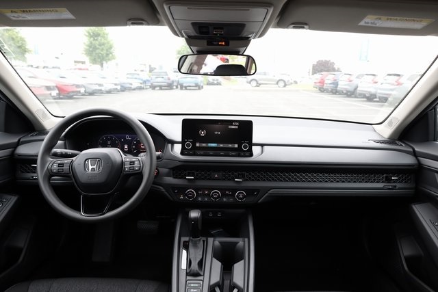 This Accord is well equipped with Nh-932m/Black Cloth, 4-Wheel Disc Brakes, 8 Speakers, ABS brakes, Adaptive Cruise Control: Adaptive Cruise Control (ACC) with Low-Speed Follow, Air Conditioning, Alloy wheels, AM/FM radio, Apple CarPlay/Android Auto, Auto High-beam Headlights, Automatic temperature control, Blind Spot Information (BSI) System warning, Brake assist, Bumpers: body-color, Compass, Delay-off headlights, Driver door bin, Driver vanity mirror, Dual front impact airbags, Dual front side impact airbags, Electronic Stability Control, Emergency communication system: HondaLink Assist, Exterior Parking Camera Rear, Fabric Seat Trim, Four wheel independent suspension, Front anti-roll bar, Front Bucket Seats, Front Center Armrest, Front dual zone A/C, Front reading lights, Fully automatic headlights, Heated door mirrors, Heated Front Bucket Seats, Heated front seats, Illuminated entry, Knee airbag, Lane departure: Lane Keeping Assist System (LKAS) active, Low tire pressure warning, Occupant sensing airbag, Outside temperature display, Overhead airbag, Overhead console, Panic alarm, Passenger door bin, Passenger vanity mirror, Power door mirrors, Power driver seat, Power moonroof, Power steering, Power windows, Radio data system, Radio: 180-Watt Audio System, Rear anti-roll bar, Rear reading lights, Rear seat center armrest, Rear side impact airbag, Rear window defroster, Remote keyless entry, Security system, Speed control, Speed-sensing steering, Speed-Sensitive Wipers, Split folding rear seat, Steering wheel mounted audio controls, Tachometer, Telescoping steering wheel, Tilt steering wheel, Traction control, Trip computer, Variably intermittent wipers, and Wheels: 17" x 7.5J Berlina Black.