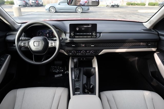 This Accord is well equipped with Gray Cloth, 4-Wheel Disc Brakes, 8 Speakers, ABS brakes, Adaptive Cruise Control: Adaptive Cruise Control (ACC) with Low-Speed Follow, Air Conditioning, Alloy wheels, AM/FM radio, Apple CarPlay/Android Auto, Auto High-beam Headlights, Automatic temperature control, Blind Spot Information (BSI) System warning, Brake assist, Bumpers: body-color, Compass, Delay-off headlights, Driver door bin, Driver vanity mirror, Dual front impact airbags, Dual front side impact airbags, Electronic Stability Control, Emergency communication system: HondaLink Assist, Exterior Parking Camera Rear, Fabric Seat Trim, Four wheel independent suspension, Front anti-roll bar, Front Bucket Seats, Front Center Armrest, Front dual zone A/C, Front reading lights, Fully automatic headlights, Heated door mirrors, Heated Front Bucket Seats, Heated front seats, Illuminated entry, Knee airbag, Lane departure: Lane Keeping Assist System (LKAS) active, Low tire pressure warning, Occupant sensing airbag, Outside temperature display, Overhead airbag, Overhead console, Panic alarm, Passenger door bin, Passenger vanity mirror, Power door mirrors, Power driver seat, Power moonroof, Power steering, Power windows, Radio data system, Radio: 180-Watt Audio System, Rear anti-roll bar, Rear reading lights, Rear seat center armrest, Rear side impact airbag, Rear window defroster, Remote keyless entry, Security system, Speed control, Speed-sensing steering, Speed-Sensitive Wipers, Split folding rear seat, Steering wheel mounted audio controls, Tachometer, Telescoping steering wheel, Tilt steering wheel, Traction control, Trip computer, Variably intermittent wipers, and Wheels: 17" x 7.5J Berlina Black.