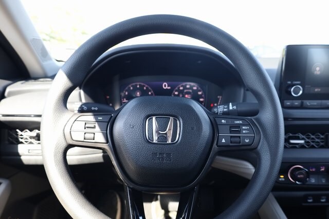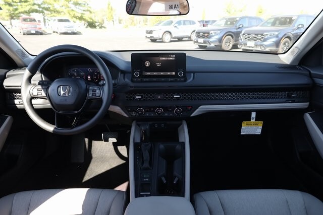 This Accord is well equipped with Gray Cloth, 4-Wheel Disc Brakes, 8 Speakers, ABS brakes, Adaptive Cruise Control: Adaptive Cruise Control (ACC) with Low-Speed Follow, Air Conditioning, Alloy wheels, AM/FM radio, Apple CarPlay/Android Auto, Auto High-beam Headlights, Automatic temperature control, Blind Spot Information (BSI) System warning, Brake assist, Bumpers: body-color, Compass, Delay-off headlights, Driver door bin, Driver vanity mirror, Dual front impact airbags, Dual front side impact airbags, Electronic Stability Control, Emergency communication system: HondaLink Assist, Exterior Parking Camera Rear, Fabric Seat Trim, Four wheel independent suspension, Front anti-roll bar, Front Bucket Seats, Front Center Armrest, Front dual zone A/C, Front reading lights, Fully automatic headlights, Heated door mirrors, Heated Front Bucket Seats, Heated front seats, Illuminated entry, Knee airbag, Lane departure: Lane Keeping Assist System (LKAS) active, Low tire pressure warning, Occupant sensing airbag, Outside temperature display, Overhead airbag, Overhead console, Panic alarm, Passenger door bin, Passenger vanity mirror, Power door mirrors, Power driver seat, Power moonroof, Power steering, Power windows, Radio data system, Radio: 180-Watt Audio System, Rear anti-roll bar, Rear reading lights, Rear seat center armrest, Rear side impact airbag, Rear window defroster, Remote keyless entry, Security system, Speed control, Speed-sensing steering, Speed-Sensitive Wipers, Split folding rear seat, Steering wheel mounted audio controls, Tachometer, Telescoping steering wheel, Tilt steering wheel, Traction control, Trip computer, Variably intermittent wipers, and Wheels: 17" x 7.5J Berlina Black.
