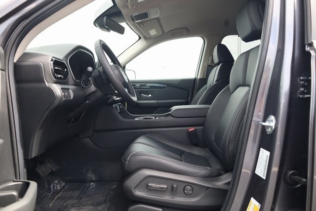 This Pilot is well equipped with AWD, 3rd row seats: split-bench, 4-Wheel Disc Brakes, 4.167 Axle Ratio, 9 Speakers, ABS brakes, Adaptive Cruise Control: Adaptive Cruise Control (ACC) with Low-Speed Follow, Air Conditioning, Alloy wheels, AM/FM radio: SiriusXM, Apple CarPlay/Android Auto, Auto High-beam Headlights, Auto-dimming Rear-View mirror, Automatic temperature control, Blind Spot Information (BSI) System warning, Brake assist, Bumpers: body-color, Delay-off headlights, Driver door bin, Driver vanity mirror, Dual front impact airbags, Dual front side impact airbags, Electronic Stability Control, Emergency communication system: HondaLink Assist, Exterior Parking Camera Rear, Four wheel independent suspension, Front anti-roll bar, Front Bucket Seats, Front Center Armrest, Front dual zone A/C, Front fog lights, Front reading lights, Fully automatic headlights, Garage door transmitter: HomeLink, Heated door mirrors, Heated Front Bucket Seats, Heated front seats, Illuminated entry, Knee airbag, Lane departure: Lane Keeping Assist System (LKAS) active, Leather Seat Trim, Low tire pressure warning, Memory seat, Occupant sensing airbag, Outside temperature display, Overhead airbag, Overhead console, Panic alarm, Passenger door bin, Passenger vanity mirror, Power door mirrors, Power driver seat, Power Liftgate, Power passenger seat, Power steering, Power windows, Radio data system, Radio: 245-Watt Audio System, Rear air conditioning, Rear anti-roll bar, Rear reading lights, Rear seat center armrest, Rear window defroster, Rear window wiper, Reclining 3rd row seat, Remote keyless entry, Security system, SiriusXM, Speed control, Speed-sensing steering, Speed-Sensitive Wipers, Split folding rear seat, Spoiler, Steering wheel mounted audio controls, Tachometer, Telescoping steering wheel, Tilt steering wheel, Traction control, Trip computer, Turn signal indicator mirrors, Variably intermittent wipers, and Wheels: 18" Pewter Gray Machined Face.
