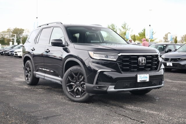 This Pilot is well equipped with AWD, 12 Speakers, 3rd row seats: split-bench, 4-Wheel Disc Brakes, 4.167 Axle Ratio, ABS brakes, Adaptive Cruise Control: Adaptive Cruise Control (ACC) with Low-Speed Follow, Air Conditioning, Alloy wheels, AM/FM radio: SiriusXM, Apple CarPlay/Android Auto, Auto High-beam Headlights, Auto-dimming Rear-View mirror, Automatic temperature control, Blind Spot Information (BSI) System warning, Bose Premium Sound System, Brake assist, Bumpers: body-color, Compass, Delay-off headlights, Driver door bin, Driver vanity mirror, Dual front impact airbags, Dual front side impact airbags, Electronic Stability Control, Emergency communication system: HondaLink, Exterior Parking Camera Rear, Four wheel independent suspension, Front anti-roll bar, Front Bucket Seats, Front Center Armrest, Front dual zone A/C, Front fog lights, Front reading lights, Fully automatic headlights, Garage door transmitter: HomeLink, Heated door mirrors, Heated Front Bucket Seats, Heated front seats, Honda Satellite-Linked Navigation System, HondaLink Subscription Services, Illuminated entry, Knee airbag, Lane departure: Lane Keeping Assist System (LKAS) active, Leather Seat Trim, Low tire pressure warning, Memory seat, Navigation system: Honda Satellite-Linked Navigation System, Occupant sensing airbag, Outside temperature display, Overhead airbag, Overhead console, Panic alarm, Passenger door bin, Passenger vanity mirror, Power door mirrors, Power driver seat, Power Liftgate, Power moonroof, Power passenger seat, Power steering, Power windows, Radio data system, Rear air conditioning, Rear anti-roll bar, Rear reading lights, Rear seat center armrest, Rear window defroster, Rear window wiper, Reclining 3rd row seat, Remote keyless entry, Security system, SiriusXM, Speed control, Speed-sensing steering, Speed-Sensitive Wipers, Split folding rear seat, Spoiler, Steering wheel mounted audio controls, Tachometer, Telescoping steering wheel, Tilt steering wheel, Traction control, Trip computer, Turn signal indicator mirrors, Variably intermittent wipers, and Wheels: 20" Black Alloy w/HPD Center Cap.