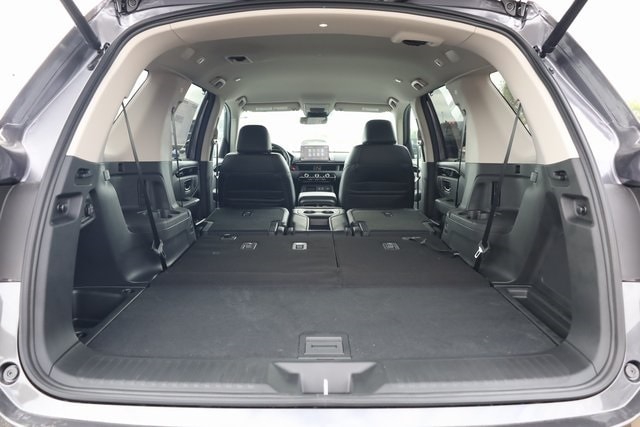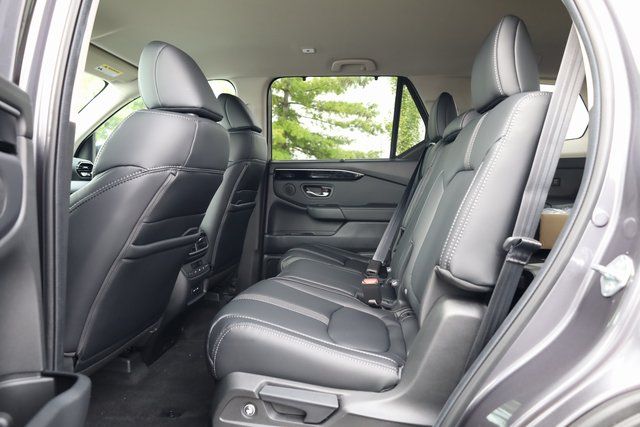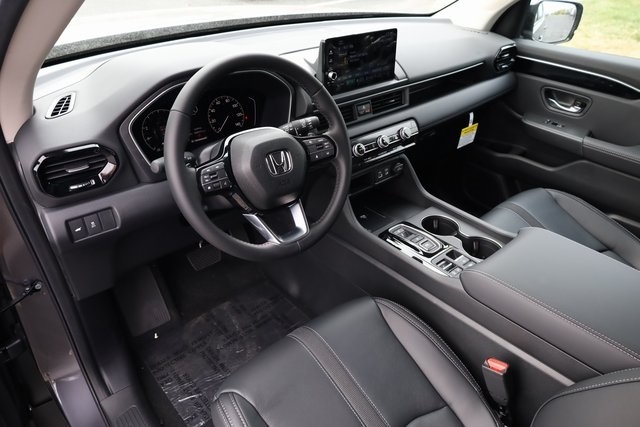 This Pilot is well equipped with AWD, 3rd row seats: split-bench, 4-Wheel Disc Brakes, 4.167 Axle Ratio, 9 Speakers, ABS brakes, Adaptive Cruise Control: Adaptive Cruise Control (ACC) with Low-Speed Follow, Air Conditioning, Alloy wheels, AM/FM radio: SiriusXM, Apple CarPlay/Android Auto, Auto High-beam Headlights, Auto-dimming Rear-View mirror, Automatic temperature control, Blind Spot Information (BSI) System warning, Brake assist, Bumpers: body-color, Delay-off headlights, Driver door bin, Driver vanity mirror, Dual front impact airbags, Dual front side impact airbags, Electronic Stability Control, Emergency communication system: HondaLink Assist, Exterior Parking Camera Rear, Four wheel independent suspension, Front anti-roll bar, Front Bucket Seats, Front Center Armrest, Front dual zone A/C, Front fog lights, Front reading lights, Fully automatic headlights, Garage door transmitter: HomeLink, Heated door mirrors, Heated Front Bucket Seats, Heated front seats, Illuminated entry, Knee airbag, Lane departure: Lane Keeping Assist System (LKAS) active, Leather Seat Trim, Low tire pressure warning, Memory seat, Occupant sensing airbag, Outside temperature display, Overhead airbag, Overhead console, Panic alarm, Passenger door bin, Passenger vanity mirror, Power door mirrors, Power driver seat, Power Liftgate, Power passenger seat, Power steering, Power windows, Radio data system, Radio: 245-Watt Audio System, Rear air conditioning, Rear anti-roll bar, Rear reading lights, Rear seat center armrest, Rear window defroster, Rear window wiper, Reclining 3rd row seat, Remote keyless entry, Security system, SiriusXM, Speed control, Speed-sensing steering, Speed-Sensitive Wipers, Split folding rear seat, Spoiler, Steering wheel mounted audio controls, Tachometer, Telescoping steering wheel, Tilt steering wheel, Traction control, Trip computer, Turn signal indicator mirrors, Variably intermittent wipers, and Wheels: 18" Pewter Gray Machined Face.