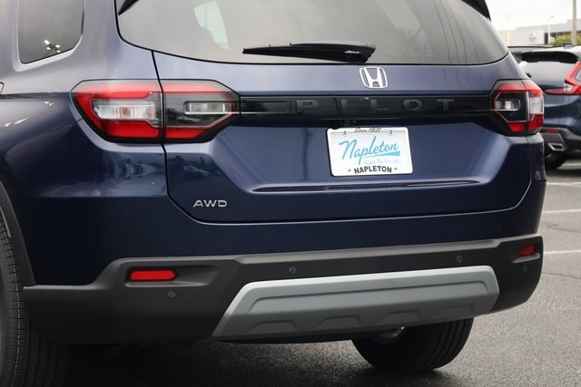 This Pilot is well equipped with AWD, 3rd row seats: split-bench, 4-Wheel Disc Brakes, 4.167 Axle Ratio, 9 Speakers, ABS brakes, Adaptive Cruise Control: Adaptive Cruise Control (ACC) with Low-Speed Follow, Air Conditioning, Alloy wheels, AM/FM radio: SiriusXM, Apple CarPlay/Android Auto, Auto High-beam Headlights, Auto-dimming Rear-View mirror, Automatic temperature control, Blind Spot Information (BSI) System warning, Brake assist, Bumpers: body-color, Delay-off headlights, Driver door bin, Driver vanity mirror, Dual front impact airbags, Dual front side impact airbags, Electronic Stability Control, Emergency communication system: HondaLink Assist, Exterior Parking Camera Rear, Four wheel independent suspension, Front anti-roll bar, Front Bucket Seats, Front Center Armrest, Front dual zone A/C, Front fog lights, Front reading lights, Fully automatic headlights, Garage door transmitter: HomeLink, Heated door mirrors, Heated Front Bucket Seats, Heated front seats, Illuminated entry, Knee airbag, Lane departure: Lane Keeping Assist System (LKAS) active, Leather Seat Trim, Low tire pressure warning, Memory seat, Occupant sensing airbag, Outside temperature display, Overhead airbag, Overhead console, Panic alarm, Passenger door bin, Passenger vanity mirror, Power door mirrors, Power driver seat, Power Liftgate, Power passenger seat, Power steering, Power windows, Radio data system, Radio: 245-Watt Audio System, Rear air conditioning, Rear anti-roll bar, Rear reading lights, Rear seat center armrest, Rear window defroster, Rear window wiper, Reclining 3rd row seat, Remote keyless entry, Security system, SiriusXM, Speed control, Speed-sensing steering, Speed-Sensitive Wipers, Split folding rear seat, Spoiler, Steering wheel mounted audio controls, Tachometer, Telescoping steering wheel, Tilt steering wheel, Traction control, Trip computer, Turn signal indicator mirrors, Variably intermittent wipers, and Wheels: 18" Pewter Gray Machined Face.