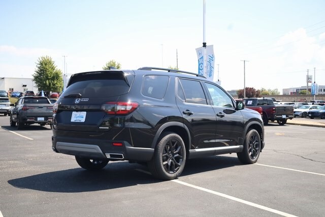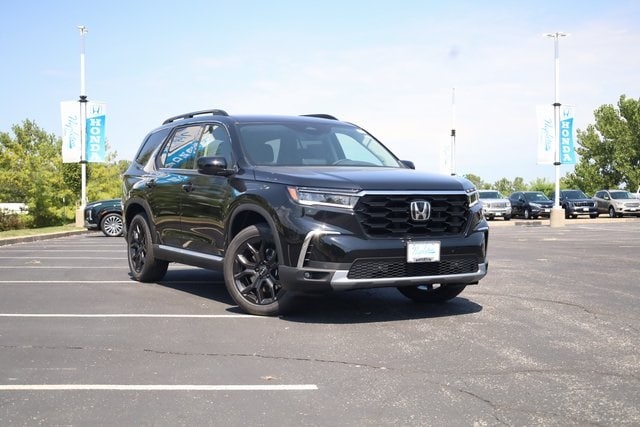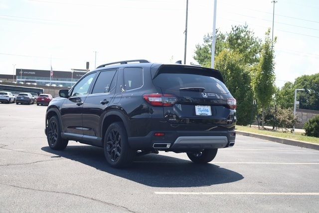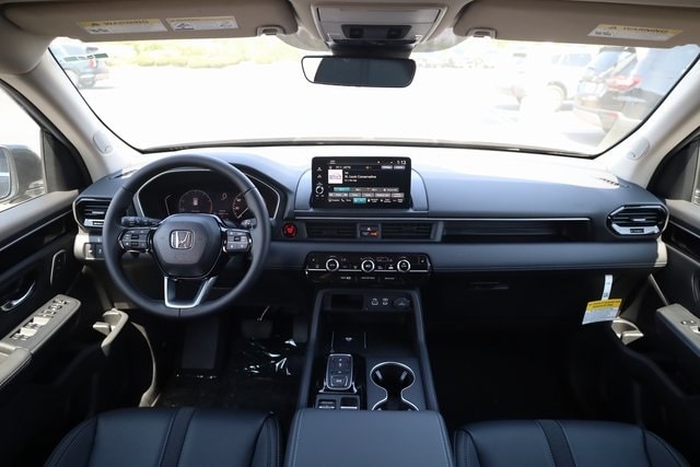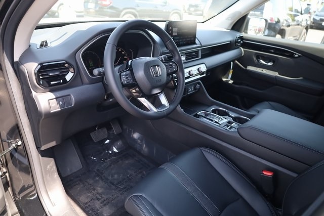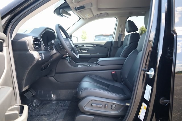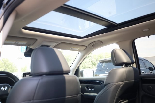 This Pilot is well equipped with AWD, 12 Speakers, 3rd row seats: split-bench, 4-Wheel Disc Brakes, 4.167 Axle Ratio, ABS brakes, Adaptive Cruise Control: Adaptive Cruise Control (ACC) with Low-Speed Follow, Air Conditioning, Alloy wheels, AM/FM radio: SiriusXM, Apple CarPlay/Android Auto, Auto High-beam Headlights, Auto-dimming Rear-View mirror, Automatic temperature control, Blind Spot Information (BSI) System warning, Bose Premium Sound System, Brake assist, Bumpers: body-color, Compass, Delay-off headlights, Driver door bin, Driver vanity mirror, Dual front impact airbags, Dual front side impact airbags, Electronic Stability Control, Emergency communication system: HondaLink, Exterior Parking Camera Rear, Four wheel independent suspension, Front anti-roll bar, Front Bucket Seats, Front Center Armrest, Front dual zone A/C, Front fog lights, Front reading lights, Fully automatic headlights, Garage door transmitter: HomeLink, Heated door mirrors, Heated Front Bucket Seats, Heated front seats, Honda Satellite-Linked Navigation System, HondaLink Subscription Services, Illuminated entry, Knee airbag, Lane departure: Lane Keeping Assist System (LKAS) active, Leather Seat Trim, Low tire pressure warning, Memory seat, Navigation system: Honda Satellite-Linked Navigation System, Occupant sensing airbag, Outside temperature display, Overhead airbag, Overhead console, Panic alarm, Passenger door bin, Passenger vanity mirror, Power door mirrors, Power driver seat, Power Liftgate, Power moonroof, Power passenger seat, Power steering, Power windows, Radio data system, Rear air conditioning, Rear anti-roll bar, Rear reading lights, Rear seat center armrest, Rear window defroster, Rear window wiper, Reclining 3rd row seat, Remote keyless entry, Security system, SiriusXM, Speed control, Speed-sensing steering, Speed-Sensitive Wipers, Split folding rear seat, Spoiler, Steering wheel mounted audio controls, Tachometer, Telescoping steering wheel, Tilt steering wheel, Traction control, Trip computer, Turn signal indicator mirrors, Variably intermittent wipers, and Wheels: 20" Black Alloy w/HPD Center Cap.