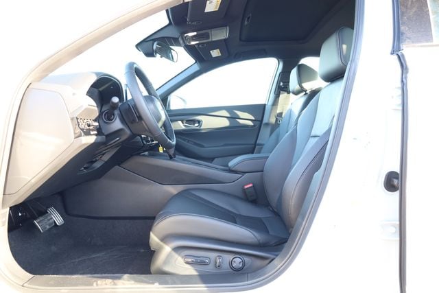 This Accord Hybrid is well equipped with 2.0L I4 DOHC 16V, 4-Wheel Disc Brakes, 8 Speakers, ABS brakes, Adaptive Cruise Control: Adaptive Cruise Control (ACC) with Low-Speed Follow, Air Conditioning, Alloy wheels, AM/FM radio, Apple CarPlay/Android Auto, Auto High-beam Headlights, Automatic temperature control, Blind Spot Information (BSI) System warning, Brake assist, Bumpers: body-color, Compass, Delay-off headlights, Driver door bin, Driver vanity mirror, Dual front impact airbags, Dual front side impact airbags, Electronic Stability Control, Emergency communication system: HondaLink, Exterior Parking Camera Rear, Four wheel independent suspension, Front anti-roll bar, Front Bucket Seats, Front Center Armrest, Front dual zone A/C, Front reading lights, Fully automatic headlights, Heated Front Bucket Seats, Heated front seats, Illuminated entry, Knee airbag, Lane departure: Lane Keeping Assist System (LKAS) active, Leather Shift Knob, Leather steering wheel, Leather-Trimmed Seat Trim, Low tire pressure warning, Memory seat, Occupant sensing airbag, Outside temperature display, Overhead airbag, Overhead console, Panic alarm, Passenger door bin, Passenger vanity mirror, Power door mirrors, Power driver seat, Power moonroof, Power passenger seat, Power steering, Power windows, Radio data system, Radio: 180-Watt Audio System, Rear anti-roll bar, Rear reading lights, Rear seat center armrest, Rear side impact airbag, Rear window defroster, Remote keyless entry, Security system, Speed control, Speed-sensing steering, Speed-Sensitive Wipers, Split folding rear seat, Spoiler, Steering wheel mounted audio controls, Telescoping steering wheel, Tilt steering wheel, Traction control, Trip computer, Variably intermittent wipers, and Wheels: 19" x 8.5J Matte Berlina Black.