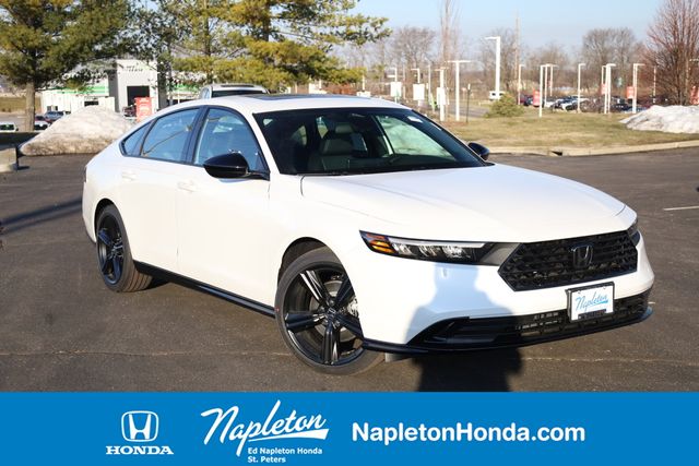 Recent Arrival! Platinum White Pearl 2026 Honda Accord Hybrid 4D Sedan Sport-L FWD CVT 2.0L I4 DOHC 16V