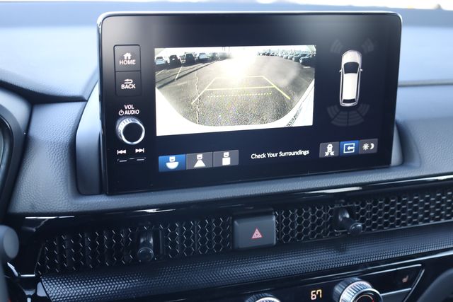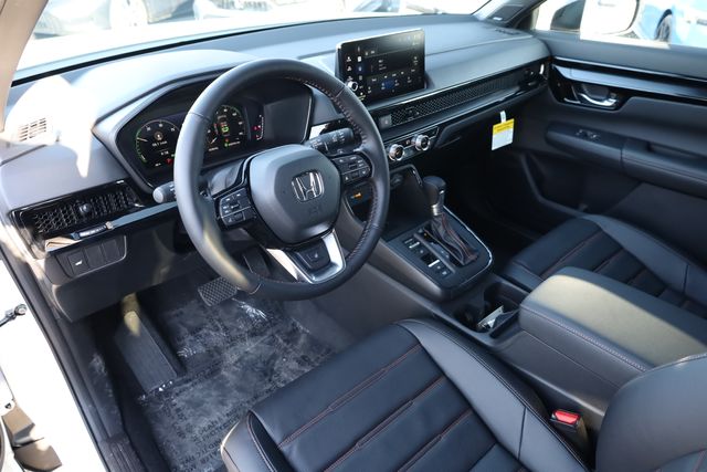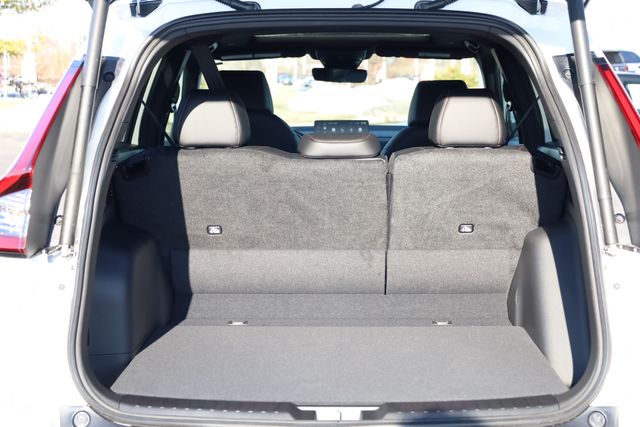 This CR-V Hybrid is well equipped with 2.0L I4 DOHC 16V, 12 Speakers, 4-Wheel Disc Brakes, ABS brakes, Adaptive Cruise Control: Adaptive Cruise Control (ACC) with Low-Speed Follow, Air Conditioning, Alloy wheels, AM/FM radio, Apple CarPlay/Android Auto, Auto High-beam Headlights, Auto-dimming Rear-View mirror, Automatic temperature control, Blind Spot Information (BSI) System warning, Bose Premium Sound System, Brake assist, Bumpers: body-color, Compass, Delay-off headlights, Driver door bin, Driver vanity mirror, Dual front impact airbags, Dual front side impact airbags, Electronic Stability Control, Exterior Parking Camera Rear, Four wheel independent suspension, Front anti-roll bar, Front Bucket Seats, Front Center Armrest, Front dual zone A/C, Front reading lights, Fully automatic headlights, Heated door mirrors, Heated Front Bucket Seats, Heated front seats, Heated steering wheel, Illuminated entry, Knee airbag, Leather Seat Trim, Leather Shift Knob, Leather steering wheel, Low tire pressure warning, Memory seat, Navigation system: Google Maps, Occupant sensing airbag, Outside temperature display, Overhead airbag, Overhead console, Panic alarm, Passenger door bin, Passenger vanity mirror, Power door mirrors, Power driver seat, Power Liftgate, Power moonroof, Power passenger seat, Power steering, Power windows, Radio data system, Rain sensing wipers, Rear anti-roll bar, Rear reading lights, Rear seat center armrest, Rear side impact airbag, Rear window defroster, Rear window wiper, Remote keyless entry, Security system, Speed control, Speed-sensing steering, Speed-Sensitive Wipers, Split folding rear seat, Spoiler, Steering wheel mounted audio controls, Telescoping steering wheel, Tilt steering wheel, Traction control, Trip computer, Turn signal indicator mirrors, Variably intermittent wipers, and Wheels: 19" Berlina Black.