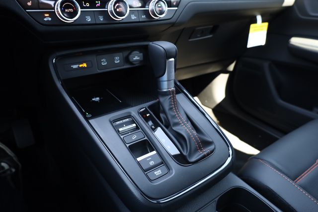 This CR-V Hybrid is well equipped with 2.0L I4 DOHC 16V, 4-Wheel Disc Brakes, 8 Speakers, ABS brakes, Adaptive Cruise Control: Adaptive Cruise Control (ACC) with Low-Speed Follow, Air Conditioning, Alloy wheels, AM/FM radio, Apple CarPlay/Android Auto, Auto High-beam Headlights, Auto-dimming Rear-View mirror, Automatic temperature control, Blind Spot Information (BSI) System warning, Brake assist, Bumpers: body-color, Compass, Delay-off headlights, Driver door bin, Driver vanity mirror, Dual front impact airbags, Dual front side impact airbags, Electronic Stability Control, Exterior Parking Camera Rear, Four wheel independent suspension, Front anti-roll bar, Front Bucket Seats, Front Center Armrest, Front dual zone A/C, Front reading lights, Fully automatic headlights, Heated door mirrors, Heated Front Bucket Seats, Heated front seats, Illuminated entry, Knee airbag, Leather Seat Trim, Leather Shift Knob, Leather steering wheel, Low tire pressure warning, Memory seat, Occupant sensing airbag, Outside temperature display, Overhead airbag, Overhead console, Panic alarm, Passenger door bin, Passenger vanity mirror, Power door mirrors, Power driver seat, Power Liftgate, Power moonroof, Power passenger seat, Power steering, Power windows, Radio data system, Radio: 320-Watt AM/FM Audio System, Rear anti-roll bar, Rear reading lights, Rear seat center armrest, Rear side impact airbag, Rear window defroster, Rear window wiper, Remote keyless entry, Security system, Speed control, Speed-sensing steering, Speed-Sensitive Wipers, Split folding rear seat, Spoiler, Steering wheel mounted audio controls, Telescoping steering wheel, Tilt steering wheel, Traction control, Trip computer, Turn signal indicator mirrors, Variably intermittent wipers, and Wheels: 18" Berlina Black.