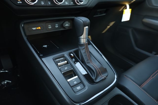 This CR-V Hybrid is well equipped with 2.0L I4 DOHC 16V, 4-Wheel Disc Brakes, 8 Speakers, ABS brakes, Adaptive Cruise Control: Adaptive Cruise Control (ACC) with Low-Speed Follow, Air Conditioning, Alloy wheels, AM/FM radio, Apple CarPlay/Android Auto, Auto High-beam Headlights, Auto-dimming Rear-View mirror, Automatic temperature control, Blind Spot Information (BSI) System warning, Brake assist, Bumpers: body-color, Compass, Delay-off headlights, Driver door bin, Driver vanity mirror, Dual front impact airbags, Dual front side impact airbags, Electronic Stability Control, Exterior Parking Camera Rear, Four wheel independent suspension, Front anti-roll bar, Front Bucket Seats, Front Center Armrest, Front dual zone A/C, Front reading lights, Fully automatic headlights, Heated door mirrors, Heated Front Bucket Seats, Heated front seats, Illuminated entry, Knee airbag, Leather Seat Trim, Leather Shift Knob, Leather steering wheel, Low tire pressure warning, Memory seat, Occupant sensing airbag, Outside temperature display, Overhead airbag, Overhead console, Panic alarm, Passenger door bin, Passenger vanity mirror, Power door mirrors, Power driver seat, Power Liftgate, Power moonroof, Power passenger seat, Power steering, Power windows, Radio data system, Radio: 320-Watt AM/FM Audio System, Rear anti-roll bar, Rear reading lights, Rear seat center armrest, Rear side impact airbag, Rear window defroster, Rear window wiper, Remote keyless entry, Security system, Speed control, Speed-sensing steering, Speed-Sensitive Wipers, Split folding rear seat, Spoiler, Steering wheel mounted audio controls, Telescoping steering wheel, Tilt steering wheel, Traction control, Trip computer, Turn signal indicator mirrors, Variably intermittent wipers, and Wheels: 18" Berlina Black.