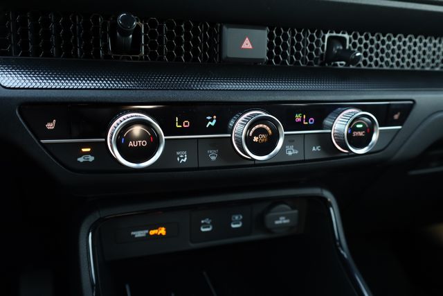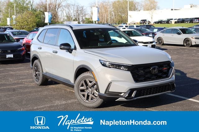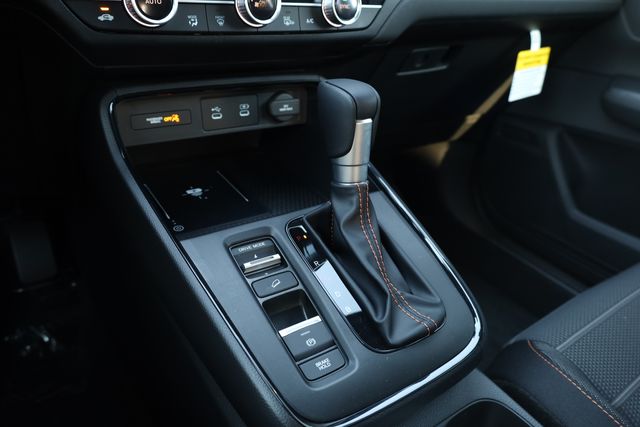 This CR-V Hybrid is well equipped with 2.0L I4 DOHC 16V, 4-Wheel Disc Brakes, 8 Speakers, ABS brakes, Adaptive Cruise Control: Adaptive Cruise Control (ACC) with Low-Speed Follow, Air Conditioning, Alloy wheels, AM/FM radio, Apple CarPlay/Android Auto, Auto High-beam Headlights, Automatic temperature control, Blind Spot Information (BSI) System warning, Brake assist, Bumpers: body-color, Cloth Seat Trim, Compass, Delay-off headlights, Driver door bin, Driver vanity mirror, Dual front impact airbags, Dual front side impact airbags, Electronic Stability Control, Exterior Parking Camera Rear, Four wheel independent suspension, Front anti-roll bar, Front Bucket Seats, Front Center Armrest, Front dual zone A/C, Front reading lights, Fully automatic headlights, Heated door mirrors, Heated Front Bucket Seats, Heated front seats, Heated steering wheel, Illuminated entry, Knee airbag, Leather Shift Knob, Leather steering wheel, Low tire pressure warning, Occupant sensing airbag, Outside temperature display, Overhead airbag, Overhead console, Panic alarm, Passenger door bin, Passenger vanity mirror, Power door mirrors, Power driver seat, Power moonroof, Power steering, Power windows, Radio data system, Radio: 320-Watt AM/FM Audio System, Rear anti-roll bar, Rear reading lights, Rear seat center armrest, Rear side impact airbag, Rear window defroster, Rear window wiper, Remote keyless entry, Security system, Speed control, Speed-sensing steering, Speed-Sensitive Wipers, Split folding rear seat, Spoiler, Steering wheel mounted audio controls, Telescoping steering wheel, Tilt steering wheel, Traction control, Trip computer, Turn signal indicator mirrors, Variably intermittent wipers, and Wheels: 18" Shark Grey.