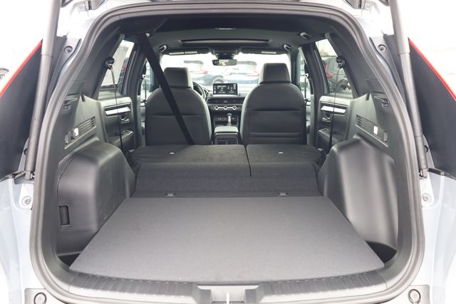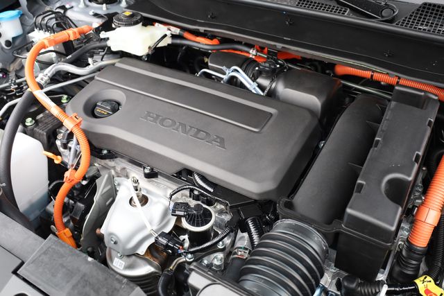 This CR-V Hybrid is well equipped with 2.0L I4 DOHC 16V, 4-Wheel Disc Brakes, 8 Speakers, ABS brakes, Adaptive Cruise Control: Adaptive Cruise Control (ACC) with Low-Speed Follow, Air Conditioning, Alloy wheels, AM/FM radio, Apple CarPlay/Android Auto, Auto High-beam Headlights, Auto-dimming Rear-View mirror, Automatic temperature control, Blind Spot Information (BSI) System warning, Brake assist, Bumpers: body-color, Compass, Delay-off headlights, Driver door bin, Driver vanity mirror, Dual front impact airbags, Dual front side impact airbags, Electronic Stability Control, Exterior Parking Camera Rear, Four wheel independent suspension, Front anti-roll bar, Front Bucket Seats, Front Center Armrest, Front dual zone A/C, Front reading lights, Fully automatic headlights, Heated door mirrors, Heated Front Bucket Seats, Heated front seats, Illuminated entry, Knee airbag, Leather Seat Trim, Leather Shift Knob, Leather steering wheel, Low tire pressure warning, Memory seat, Occupant sensing airbag, Outside temperature display, Overhead airbag, Overhead console, Panic alarm, Passenger door bin, Passenger vanity mirror, Power door mirrors, Power driver seat, Power Liftgate, Power moonroof, Power passenger seat, Power steering, Power windows, Radio data system, Radio: 320-Watt AM/FM Audio System, Rear anti-roll bar, Rear reading lights, Rear seat center armrest, Rear side impact airbag, Rear window defroster, Rear window wiper, Remote keyless entry, Security system, Speed control, Speed-sensing steering, Speed-Sensitive Wipers, Split folding rear seat, Spoiler, Steering wheel mounted audio controls, Telescoping steering wheel, Tilt steering wheel, Traction control, Trip computer, Turn signal indicator mirrors, Variably intermittent wipers, and Wheels: 18" Berlina Black.