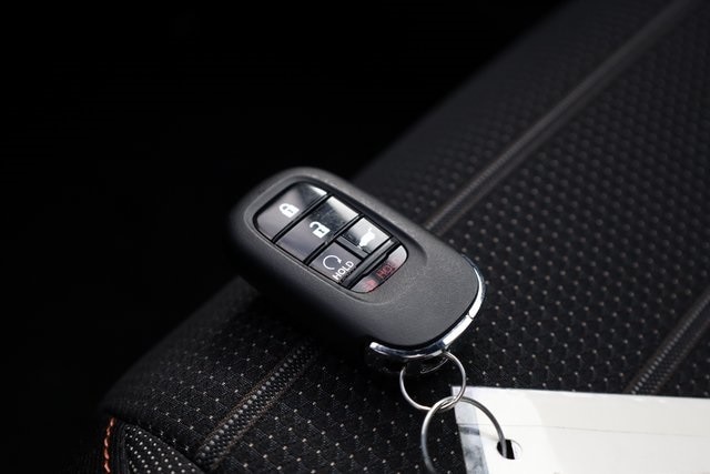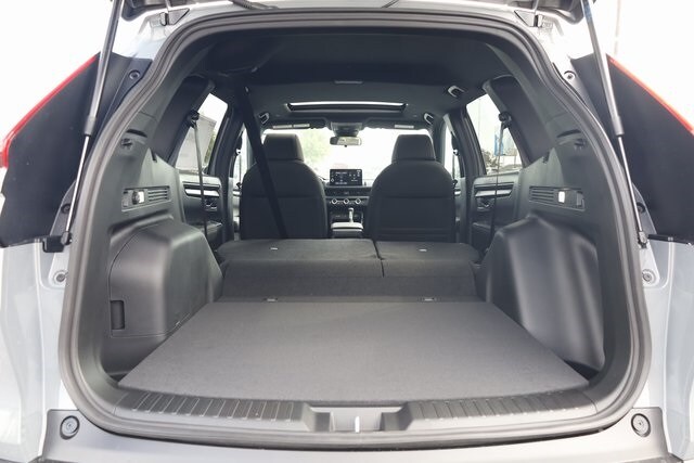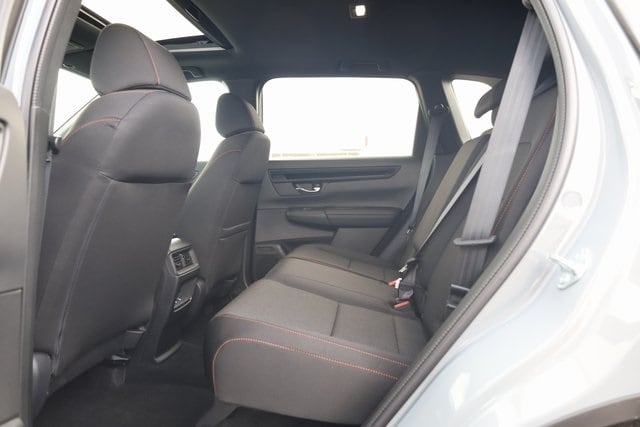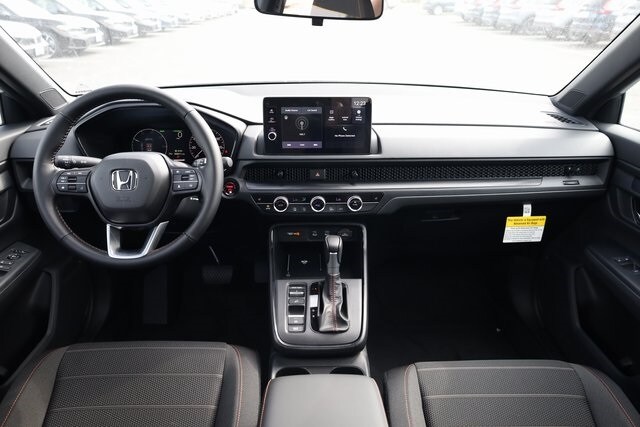 This CR-V Hybrid is well equipped with 2.0L I4 DOHC 16V, 4-Wheel Disc Brakes, 6 Speakers, ABS brakes, Adaptive Cruise Control: Adaptive Cruise Control (ACC) with Low-Speed Follow, Air Conditioning, Alloy wheels, Apple CarPlay/Android Auto, Auto High-beam Headlights, Automatic temperature control, Blind Spot Information (BSI) System warning, Brake assist, Bumpers: body-color, Cloth Seat Trim, Compass, Delay-off headlights, Driver door bin, Driver vanity mirror, Dual front impact airbags, Dual front side impact airbags, Electronic Stability Control, Exterior Parking Camera Rear, Four wheel independent suspension, Front anti-roll bar, Front Bucket Seats, Front Center Armrest, Front dual zone A/C, Front reading lights, Fully automatic headlights, Heated door mirrors, Heated Front Bucket Seats, Heated front seats, Illuminated entry, Knee airbag, Leather Shift Knob, Leather steering wheel, Low tire pressure warning, Occupant sensing airbag, Outside temperature display, Overhead airbag, Overhead console, Panic alarm, Passenger door bin, Passenger vanity mirror, Power door mirrors, Power driver seat, Power moonroof, Power steering, Power windows, Radio data system, Radio: 240-Watt AM/FM Audio System, Rear anti-roll bar, Rear reading lights, Rear seat center armrest, Rear side impact airbag, Rear window defroster, Rear window wiper, Remote keyless entry, Security system, Speed control, Speed-sensing steering, Speed-Sensitive Wipers, Split folding rear seat, Spoiler, Steering wheel mounted audio controls, Telescoping steering wheel, Tilt steering wheel, Traction control, Trip computer, Turn signal indicator mirrors, Variably intermittent wipers, and Wheels: 18" Berlina Black.