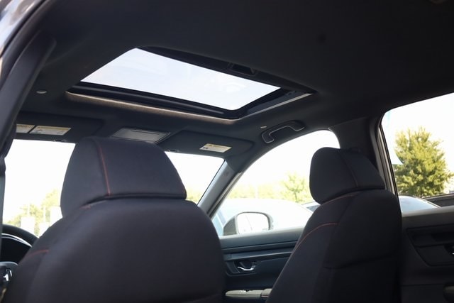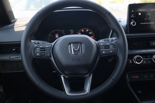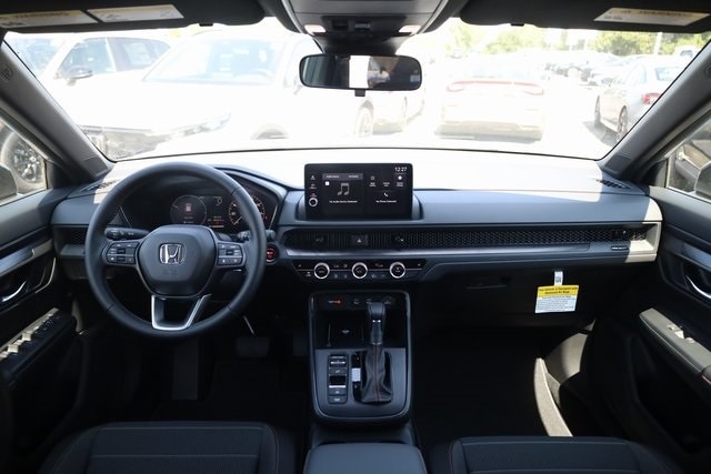 This CR-V Hybrid is well equipped with 2.0L I4 DOHC 16V, 4-Wheel Disc Brakes, 6 Speakers, ABS brakes, Adaptive Cruise Control: Adaptive Cruise Control (ACC) with Low-Speed Follow, Air Conditioning, Alloy wheels, Apple CarPlay/Android Auto, Auto High-beam Headlights, Automatic temperature control, Blind Spot Information (BSI) System warning, Brake assist, Bumpers: body-color, Cloth Seat Trim, Compass, Delay-off headlights, Driver door bin, Driver vanity mirror, Dual front impact airbags, Dual front side impact airbags, Electronic Stability Control, Exterior Parking Camera Rear, Four wheel independent suspension, Front anti-roll bar, Front Bucket Seats, Front Center Armrest, Front dual zone A/C, Front reading lights, Fully automatic headlights, Heated door mirrors, Heated Front Bucket Seats, Heated front seats, Illuminated entry, Knee airbag, Leather Shift Knob, Leather steering wheel, Low tire pressure warning, Occupant sensing airbag, Outside temperature display, Overhead airbag, Overhead console, Panic alarm, Passenger door bin, Passenger vanity mirror, Power door mirrors, Power driver seat, Power moonroof, Power steering, Power windows, Radio data system, Radio: 240-Watt AM/FM Audio System, Rear anti-roll bar, Rear reading lights, Rear seat center armrest, Rear side impact airbag, Rear window defroster, Rear window wiper, Remote keyless entry, Security system, Speed control, Speed-sensing steering, Speed-Sensitive Wipers, Split folding rear seat, Spoiler, Steering wheel mounted audio controls, Telescoping steering wheel, Tilt steering wheel, Traction control, Trip computer, Turn signal indicator mirrors, Variably intermittent wipers, and Wheels: 18" Berlina Black.