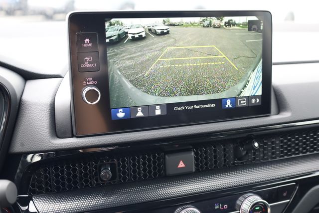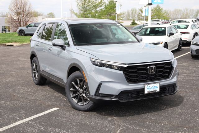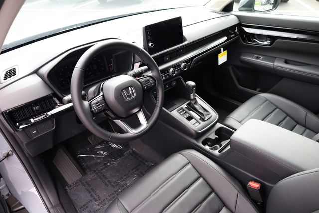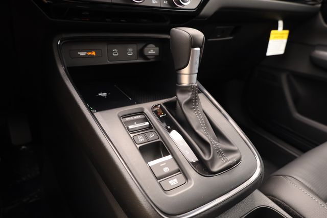 This CR-V is well equipped with AWD, 4-Wheel Disc Brakes, 8 Speakers, ABS brakes, Adaptive Cruise Control: Adaptive Cruise Control (ACC) with Low-Speed Follow, Air Conditioning, Alloy wheels, AM/FM radio, Apple CarPlay/Android Auto, Auto High-beam Headlights, Auto-dimming Rear-View mirror, Automatic temperature control, Blind Spot Information (BSI) System warning, Brake assist, Bumpers: body-color, Compass, Delay-off headlights, Driver door bin, Driver vanity mirror, Dual front impact airbags, Dual front side impact airbags, Electronic Stability Control, Exterior Parking Camera Rear, Four wheel independent suspension, Front anti-roll bar, Front Bucket Seats, Front Center Armrest, Front dual zone A/C, Front reading lights, Fully automatic headlights, Heated door mirrors, Heated Front Bucket Seats, Heated front seats, Illuminated entry, Knee airbag, Leather Seat Trim, Leather Shift Knob, Leather steering wheel, Low tire pressure warning, Memory seat, Occupant sensing airbag, Outside temperature display, Overhead airbag, Overhead console, Panic alarm, Passenger door bin, Passenger vanity mirror, Power door mirrors, Power driver seat, Power Liftgate, Power moonroof, Power passenger seat, Power steering, Power windows, Radio data system, Radio: 320-Watt AM/FM Audio System, Rear anti-roll bar, Rear reading lights, Rear seat center armrest, Rear side impact airbag, Rear window defroster, Rear window wiper, Remote keyless entry, Security system, Speed control, Speed-sensing steering, Speed-Sensitive Wipers, Split folding rear seat, Spoiler, Steering wheel mounted audio controls, Tachometer, Telescoping steering wheel, Tilt steering wheel, Traction control, Trip computer, Turn signal indicator mirrors, Variably intermittent wipers, and Wheels: 18" Shark Grey.