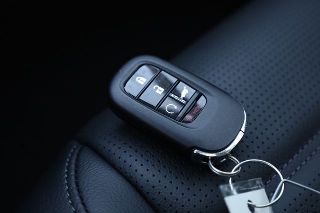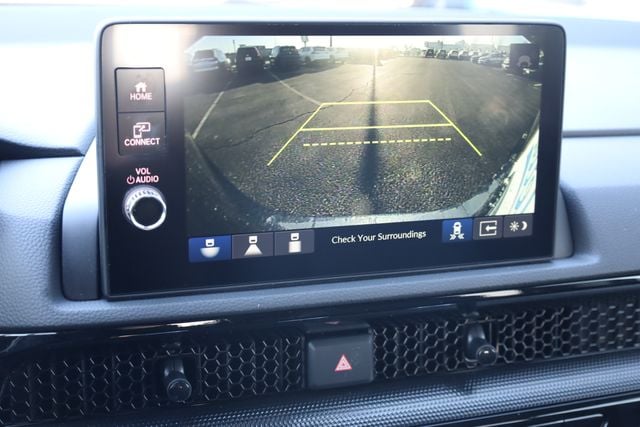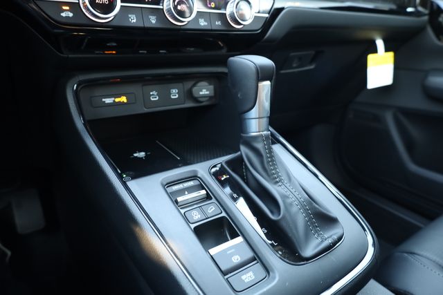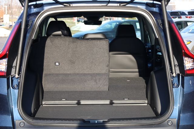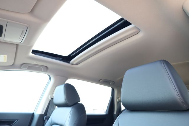 This CR-V is well equipped with AWD, 4-Wheel Disc Brakes, 8 Speakers, ABS brakes, Adaptive Cruise Control: Adaptive Cruise Control (ACC) with Low-Speed Follow, Air Conditioning, Alloy wheels, AM/FM radio, Apple CarPlay/Android Auto, Auto High-beam Headlights, Auto-dimming Rear-View mirror, Automatic temperature control, Blind Spot Information (BSI) System warning, Brake assist, Bumpers: body-color, Compass, Delay-off headlights, Driver door bin, Driver vanity mirror, Dual front impact airbags, Dual front side impact airbags, Electronic Stability Control, Exterior Parking Camera Rear, Four wheel independent suspension, Front anti-roll bar, Front Bucket Seats, Front Center Armrest, Front dual zone A/C, Front reading lights, Fully automatic headlights, Heated door mirrors, Heated Front Bucket Seats, Heated front seats, Illuminated entry, Knee airbag, Leather Seat Trim, Leather Shift Knob, Leather steering wheel, Low tire pressure warning, Memory seat, Occupant sensing airbag, Outside temperature display, Overhead airbag, Overhead console, Panic alarm, Passenger door bin, Passenger vanity mirror, Power door mirrors, Power driver seat, Power Liftgate, Power moonroof, Power passenger seat, Power steering, Power windows, Radio data system, Radio: 320-Watt AM/FM Audio System, Rear anti-roll bar, Rear reading lights, Rear seat center armrest, Rear side impact airbag, Rear window defroster, Rear window wiper, Remote keyless entry, Security system, Speed control, Speed-sensing steering, Speed-Sensitive Wipers, Split folding rear seat, Spoiler, Steering wheel mounted audio controls, Tachometer, Telescoping steering wheel, Tilt steering wheel, Traction control, Trip computer, Turn signal indicator mirrors, Variably intermittent wipers, and Wheels: 18" Shark Grey.