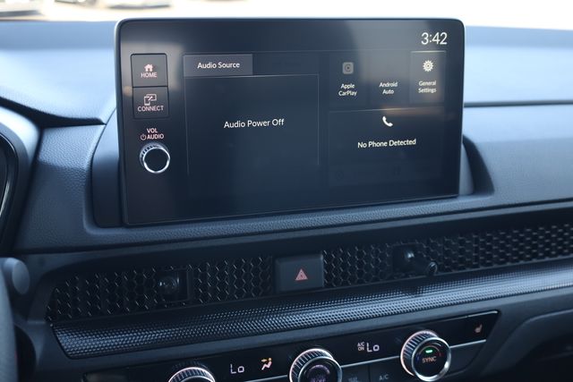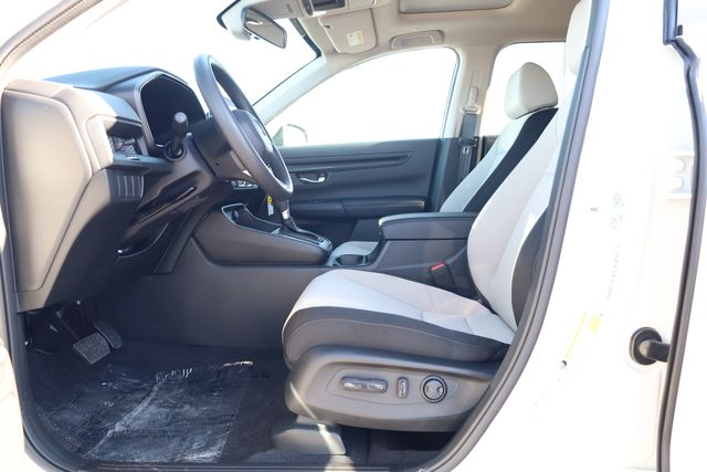 This CR-V is well equipped with AWD, 4-Wheel Disc Brakes, 6 Speakers, ABS brakes, Adaptive Cruise Control: Adaptive Cruise Control (ACC) with Low-Speed Follow, Air Conditioning, Alloy wheels, AM/FM radio, Apple CarPlay/Android Auto, Auto High-beam Headlights, Automatic temperature control, Blind Spot Information (BSI) System warning, Brake assist, Bumpers: body-color, Cloth Seat Trim, Compass, Delay-off headlights, Driver door bin, Driver vanity mirror, Dual front impact airbags, Dual front side impact airbags, Electronic Stability Control, Exterior Parking Camera Rear, Four wheel independent suspension, Front anti-roll bar, Front Bucket Seats, Front Center Armrest, Front dual zone A/C, Front reading lights, Fully automatic headlights, Heated door mirrors, Heated Front Bucket Seats, Heated front seats, Illuminated entry, Knee airbag, Low tire pressure warning, Occupant sensing airbag, Outside temperature display, Overhead airbag, Overhead console, Panic alarm, Passenger door bin, Passenger vanity mirror, Power door mirrors, Power driver seat, Power moonroof, Power steering, Power windows, Radio data system, Radio: 240-Watt AM/FM Audio System, Rear anti-roll bar, Rear reading lights, Rear seat center armrest, Rear side impact airbag, Rear window defroster, Rear window wiper, Remote keyless entry, Security system, Speed control, Speed-sensing steering, Speed-Sensitive Wipers, Split folding rear seat, Spoiler, Steering wheel mounted audio controls, Tachometer, Telescoping steering wheel, Tilt steering wheel, Traction control, Trip computer, Turn signal indicator mirrors, Variably intermittent wipers, and Wheels: 18" Sparkle Silver.