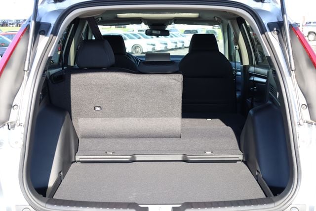 This CR-V is well equipped with AWD, 4-Wheel Disc Brakes, 6 Speakers, ABS brakes, Adaptive Cruise Control: Adaptive Cruise Control (ACC) with Low-Speed Follow, Air Conditioning, Alloy wheels, AM/FM radio, Apple CarPlay/Android Auto, Auto High-beam Headlights, Automatic temperature control, Blind Spot Information (BSI) System warning, Brake assist, Bumpers: body-color, Cloth Seat Trim, Compass, Delay-off headlights, Driver door bin, Driver vanity mirror, Dual front impact airbags, Dual front side impact airbags, Electronic Stability Control, Exterior Parking Camera Rear, Four wheel independent suspension, Front anti-roll bar, Front Bucket Seats, Front Center Armrest, Front dual zone A/C, Front reading lights, Fully automatic headlights, Heated door mirrors, Heated Front Bucket Seats, Heated front seats, Illuminated entry, Knee airbag, Low tire pressure warning, Occupant sensing airbag, Outside temperature display, Overhead airbag, Overhead console, Panic alarm, Passenger door bin, Passenger vanity mirror, Power door mirrors, Power driver seat, Power moonroof, Power steering, Power windows, Radio data system, Radio: 240-Watt AM/FM Audio System, Rear anti-roll bar, Rear reading lights, Rear seat center armrest, Rear side impact airbag, Rear window defroster, Rear window wiper, Remote keyless entry, Security system, Speed control, Speed-sensing steering, Speed-Sensitive Wipers, Split folding rear seat, Spoiler, Steering wheel mounted audio controls, Tachometer, Telescoping steering wheel, Tilt steering wheel, Traction control, Trip computer, Turn signal indicator mirrors, Variably intermittent wipers, and Wheels: 18" Sparkle Silver.