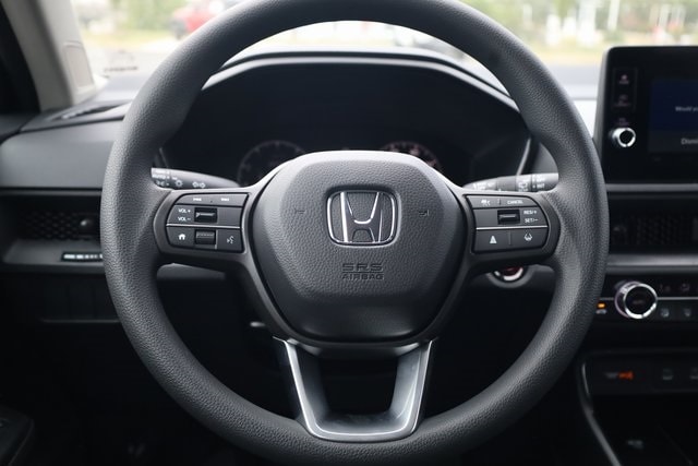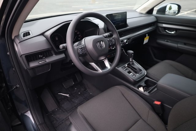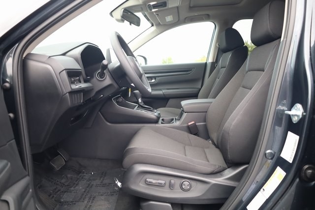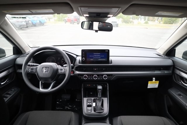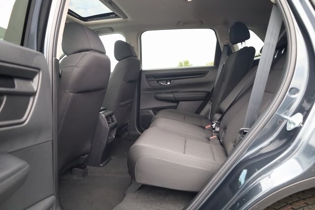 This CR-V is well equipped with AWD, 4-Wheel Disc Brakes, 6 Speakers, ABS brakes, Adaptive Cruise Control: Adaptive Cruise Control (ACC) with Low-Speed Follow, Air Conditioning, Alloy wheels, Apple CarPlay/Android Auto, Auto High-beam Headlights, Automatic temperature control, Blind Spot Information (BSI) System warning, Brake assist, Bumpers: body-color, Cloth Seat Trim, Compass, Delay-off headlights, Driver door bin, Driver vanity mirror, Dual front impact airbags, Dual front side impact airbags, Electronic Stability Control, Exterior Parking Camera Rear, Four wheel independent suspension, Front anti-roll bar, Front Bucket Seats, Front Center Armrest, Front dual zone A/C, Front reading lights, Fully automatic headlights, Heated door mirrors, Heated Front Bucket Seats, Heated front seats, Illuminated entry, Knee airbag, Low tire pressure warning, Occupant sensing airbag, Outside temperature display, Overhead airbag, Overhead console, Panic alarm, Passenger door bin, Passenger vanity mirror, Power door mirrors, Power driver seat, Power moonroof, Power steering, Power windows, Radio data system, Radio: 240-Watt AM/FM Audio System, Rear anti-roll bar, Rear reading lights, Rear seat center armrest, Rear side impact airbag, Rear window defroster, Rear window wiper, Remote keyless entry, Security system, Speed control, Speed-sensing steering, Speed-Sensitive Wipers, Split folding rear seat, Spoiler, Steering wheel mounted audio controls, Tachometer, Telescoping steering wheel, Tilt steering wheel, Traction control, Trip computer, Turn signal indicator mirrors, Variably intermittent wipers, and Wheels: 18" Sparkle Silver.