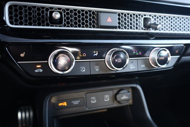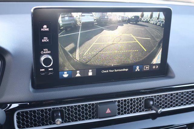 This Civic Hybrid is well equipped with 2.0L I4 DOHC 16V, 12 Speakers, 4-Wheel Disc Brakes, ABS brakes, Adaptive Cruise Control: Adaptive Cruise Control (ACC) with Low-Speed Follow, Air Conditioning, Alloy wheels, AM/FM radio, Apple CarPlay/Android Auto, Auto High-beam Headlights, Auto-dimming Rear-View mirror, Automatic temperature control, Blind Spot Information (BSI) System warning, Bose Premium Sound System, Brake assist, Bumpers: body-color, Compass, Delay-off headlights, Driver door bin, Driver vanity mirror, Dual front impact airbags, Dual front side impact airbags, Electronic Stability Control, Emergency communication system: HondaLink, Exterior Parking Camera Rear, Four wheel independent suspension, Front anti-roll bar, Front Bucket Seats, Front Center Armrest, Front dual zone A/C, Front reading lights, Fully automatic headlights, Heated door mirrors, Heated Front Bucket Seats, Heated front seats, Illuminated entry, Knee airbag, Lane departure: Lane Keeping Assist System (LKAS) active, Leather Shift Knob, Leather steering wheel, Leather-Trimmed Seat Trim, Low tire pressure warning, Navigation system: Google Maps, Occupant sensing airbag, Outside temperature display, Overhead airbag, Overhead console, Panic alarm, Passenger door bin, Passenger vanity mirror, Power door mirrors, Power driver seat, Power moonroof, Power passenger seat, Power steering, Power windows, Radio data system, Rain sensing wipers, Rear anti-roll bar, Rear seat center armrest, Rear side impact airbag, Rear window defroster, Rear window wiper, Remote keyless entry, Security system, Speed control, Speed-sensing steering, Split folding rear seat, Steering wheel mounted audio controls, Tachometer, Telescoping steering wheel, Tilt steering wheel, Traction control, Trip computer, Turn signal indicator mirrors, Variably intermittent wipers, and Wheels: 18" Alloy w/Matte Shark Gray Inserts.