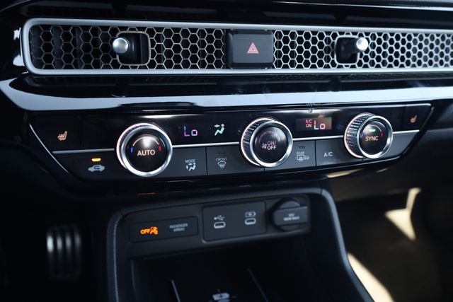 This Civic Hybrid is well equipped with 2.0L I4 DOHC 16V, 12 Speakers, 4-Wheel Disc Brakes, ABS brakes, Adaptive Cruise Control: Adaptive Cruise Control (ACC) with Low-Speed Follow, Air Conditioning, Alloy wheels, AM/FM radio, Apple CarPlay/Android Auto, Auto High-beam Headlights, Auto-dimming Rear-View mirror, Automatic temperature control, Blind Spot Information (BSI) System warning, Bose Premium Sound System, Brake assist, Bumpers: body-color, Compass, Delay-off headlights, Driver door bin, Driver vanity mirror, Dual front impact airbags, Dual front side impact airbags, Electronic Stability Control, Emergency communication system: HondaLink, Exterior Parking Camera Rear, Four wheel independent suspension, Front anti-roll bar, Front Bucket Seats, Front Center Armrest, Front dual zone A/C, Front reading lights, Fully automatic headlights, Heated door mirrors, Heated Front Bucket Seats, Heated front seats, Illuminated entry, Knee airbag, Lane departure: Lane Keeping Assist System (LKAS) active, Leather Shift Knob, Leather steering wheel, Leather-Trimmed Seat Trim, Low tire pressure warning, Navigation system: Google Maps, Occupant sensing airbag, Outside temperature display, Overhead airbag, Overhead console, Panic alarm, Passenger door bin, Passenger vanity mirror, Power door mirrors, Power driver seat, Power moonroof, Power passenger seat, Power steering, Power windows, Radio data system, Rain sensing wipers, Rear anti-roll bar, Rear seat center armrest, Rear side impact airbag, Rear window defroster, Rear window wiper, Remote keyless entry, Security system, Speed control, Speed-sensing steering, Split folding rear seat, Steering wheel mounted audio controls, Tachometer, Telescoping steering wheel, Tilt steering wheel, Traction control, Trip computer, Turn signal indicator mirrors, Variably intermittent wipers, and Wheels: 18" Alloy with Matte Shark Gray Inserts.