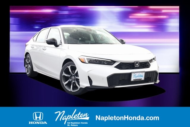 Platinum White Pearl 2026 Honda Civic Hybrid 4D Hatchback Sport Touring FWD eCVT 2.0L I4 DOHC 16V