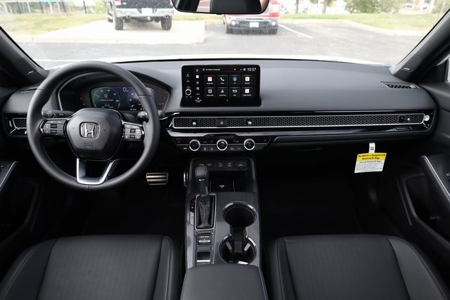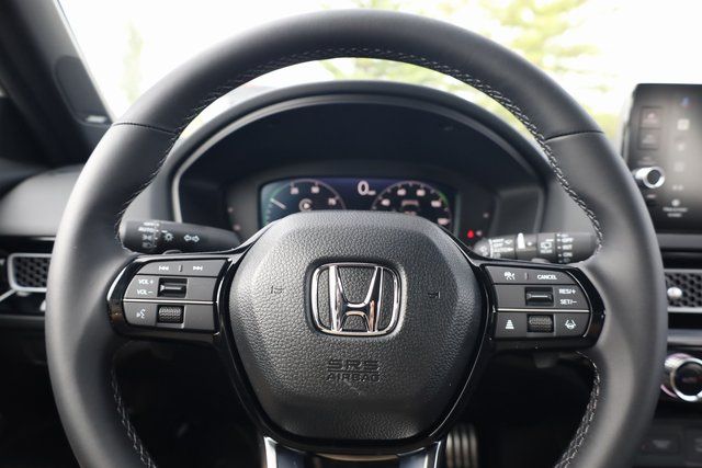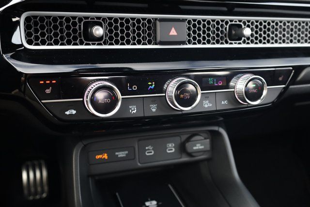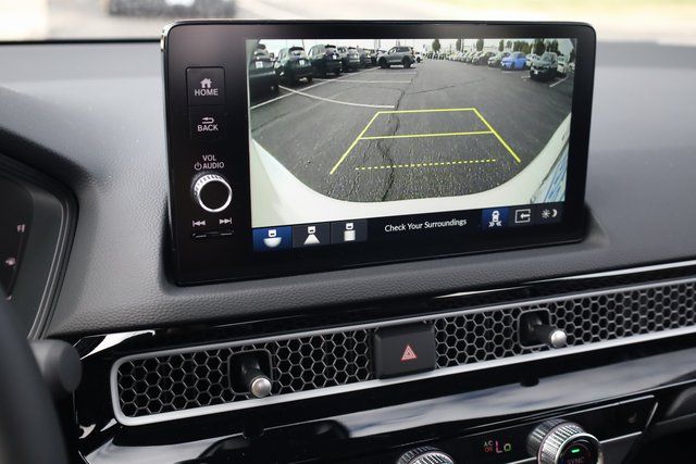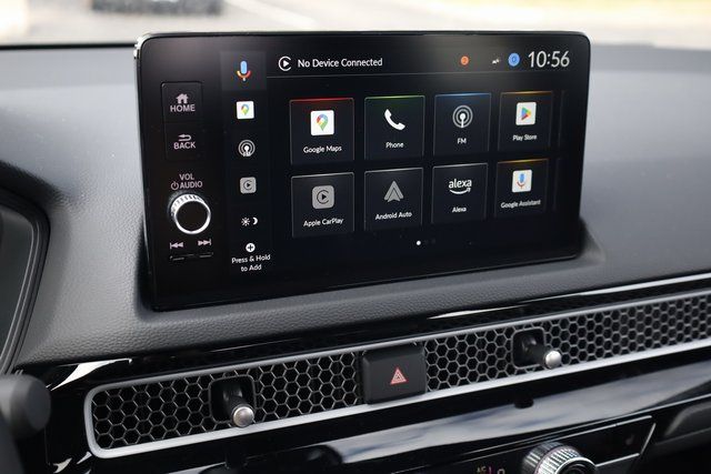 This Civic Hybrid is well equipped with 2.0L I4 DOHC 16V, 12 Speakers, 4-Wheel Disc Brakes, ABS brakes, Adaptive Cruise Control: Adaptive Cruise Control (ACC) with Low-Speed Follow, Air Conditioning, Alloy wheels, AM/FM radio, Apple CarPlay/Android Auto, Auto High-beam Headlights, Auto-dimming Rear-View mirror, Automatic temperature control, Blind Spot Information (BSI) System warning, Bose Premium Sound System, Brake assist, Bumpers: body-color, Compass, Delay-off headlights, Driver door bin, Driver vanity mirror, Dual front impact airbags, Dual front side impact airbags, Electronic Stability Control, Emergency communication system: HondaLink, Exterior Parking Camera Rear, Four wheel independent suspension, Front anti-roll bar, Front Bucket Seats, Front Center Armrest, Front dual zone A/C, Front reading lights, Fully automatic headlights, Heated door mirrors, Heated Front Bucket Seats, Heated front seats, Illuminated entry, Knee airbag, Lane departure: Lane Keeping Assist System (LKAS) active, Leather Shift Knob, Leather steering wheel, Leather-Trimmed Seat Trim, Low tire pressure warning, Navigation system: Google Maps, Occupant sensing airbag, Outside temperature display, Overhead airbag, Overhead console, Panic alarm, Passenger door bin, Passenger vanity mirror, Power door mirrors, Power driver seat, Power moonroof, Power passenger seat, Power steering, Power windows, Radio data system, Rain sensing wipers, Rear anti-roll bar, Rear seat center armrest, Rear side impact airbag, Rear window defroster, Rear window wiper, Remote keyless entry, Security system, Speed control, Speed-sensing steering, Split folding rear seat, Steering wheel mounted audio controls, Tachometer, Telescoping steering wheel, Tilt steering wheel, Traction control, Trip computer, Turn signal indicator mirrors, Variably intermittent wipers, and Wheels: 18" Alloy w/Matte Shark Gray Inserts.