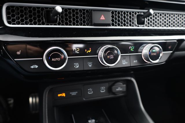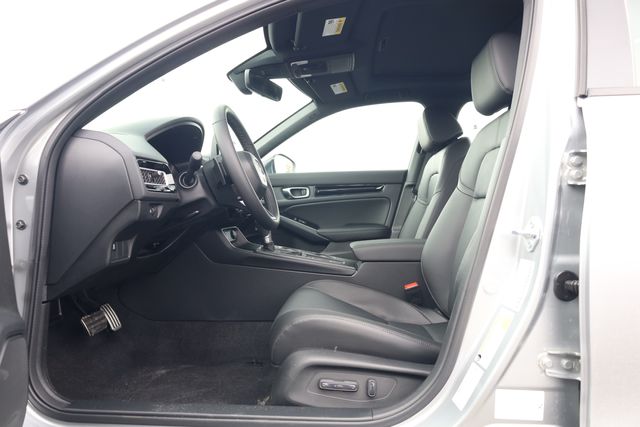This Civic Hybrid is well equipped with 2.0L 16V DOHC, 12 Speakers, 4-Wheel Disc Brakes, ABS brakes, Adaptive Cruise Control: Adaptive Cruise Control (ACC) with Low-Speed Follow, Air Conditioning, Alloy wheels, AM/FM radio, Apple CarPlay/Android Auto, Auto High-beam Headlights, Auto-dimming Rear-View mirror, Automatic temperature control, Blind Spot Information (BSI) System warning, Bose Premium Sound System, Brake assist, Bumpers: body-color, Compass, Delay-off headlights, Driver door bin, Driver vanity mirror, Dual front impact airbags, Dual front side impact airbags, Electronic Stability Control, Emergency communication system: HondaLink, Exterior Parking Camera Rear, Four wheel independent suspension, Front anti-roll bar, Front Bucket Seats, Front Center Armrest, Front dual zone A/C, Front reading lights, Fully automatic headlights, Heated door mirrors, Heated Front Bucket Seats, Heated front seats, Illuminated entry, Knee airbag, Leather Shift Knob, Leather steering wheel, Leather-Trimmed Seat Trim, Low tire pressure warning, Navigation system: Google Maps, Occupant sensing airbag, Outside temperature display, Overhead airbag, Overhead console, Panic alarm, Passenger door bin, Passenger vanity mirror, Power door mirrors, Power driver seat, Power moonroof, Power passenger seat, Power steering, Power windows, Radio data system, Rain sensing wipers, Rear anti-roll bar, Rear seat center armrest, Rear side impact airbag, Rear window defroster, Remote keyless entry, Security system, Speed control, Speed-sensing steering, Split folding rear seat, Steering wheel mounted audio controls, Tachometer, Telescoping steering wheel, Tilt steering wheel, Traction control, Trip computer, Turn signal indicator mirrors, Variably intermittent wipers, and Wheels: 18" Alloy with Matte Shark Gray Inserts.