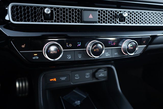 This Civic Hybrid is well equipped with 2.0L I4 DOHC 16V, 12 Speakers, 4-Wheel Disc Brakes, ABS brakes, Adaptive Cruise Control: Adaptive Cruise Control (ACC) with Low-Speed Follow, Air Conditioning, Alloy wheels, AM/FM radio, Apple CarPlay/Android Auto, Auto High-beam Headlights, Auto-dimming Rear-View mirror, Automatic temperature control, Blind Spot Information (BSI) System warning, Bose Premium Sound System, Brake assist, Bumpers: body-color, Compass, Delay-off headlights, Driver door bin, Driver vanity mirror, Dual front impact airbags, Dual front side impact airbags, Electronic Stability Control, Emergency communication system: HondaLink, Exterior Parking Camera Rear, Four wheel independent suspension, Front anti-roll bar, Front Bucket Seats, Front Center Armrest, Front dual zone A/C, Front reading lights, Fully automatic headlights, Heated door mirrors, Heated Front Bucket Seats, Heated front seats, Illuminated entry, Knee airbag, Lane departure: Lane Keeping Assist System (LKAS) active, Leather Shift Knob, Leather steering wheel, Leather-Trimmed Seat Trim, Low tire pressure warning, Navigation system: Google Maps, Occupant sensing airbag, Outside temperature display, Overhead airbag, Overhead console, Panic alarm, Passenger door bin, Passenger vanity mirror, Power door mirrors, Power driver seat, Power moonroof, Power passenger seat, Power steering, Power windows, Radio data system, Rain sensing wipers, Rear anti-roll bar, Rear seat center armrest, Rear side impact airbag, Rear window defroster, Rear window wiper, Remote keyless entry, Security system, Speed control, Speed-sensing steering, Split folding rear seat, Steering wheel mounted audio controls, Tachometer, Telescoping steering wheel, Tilt steering wheel, Traction control, Trip computer, Turn signal indicator mirrors, Variably intermittent wipers, and Wheels: 18" Alloy w/Matte Shark Gray Inserts.