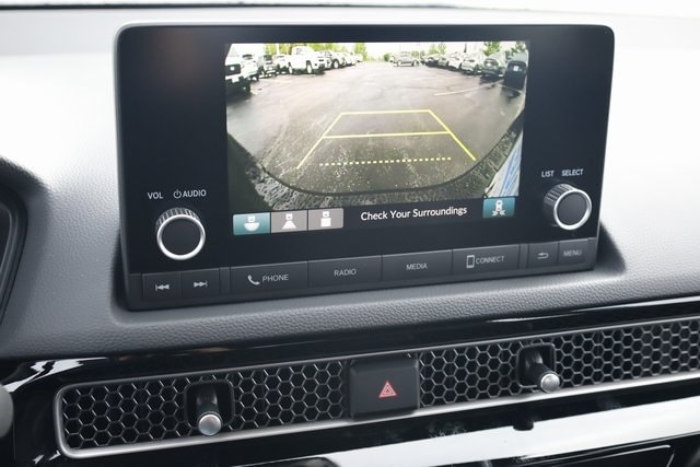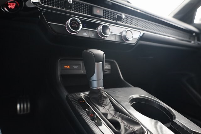 This Civic is well equipped with Black Artificial Leather, 4-Wheel Disc Brakes, 8 Speakers, ABS brakes, Adaptive Cruise Control: Adaptive Cruise Control (ACC) with Low-Speed Follow, Air Conditioning, Alloy wheels, AM/FM radio, Apple CarPlay/Android Auto, Auto High-beam Headlights, Automatic temperature control, Blind Spot Information (BSI) System warning, Brake assist, Bumpers: body-color, Cloth/Leatherette Seating Surfaces, Delay-off headlights, Driver door bin, Driver vanity mirror, Dual front impact airbags, Dual front side impact airbags, Electronic Stability Control, Emergency communication system: HondaLink, Exterior Parking Camera Rear, Four wheel independent suspension, Front anti-roll bar, Front Bucket Seats, Front Center Armrest, Front reading lights, Fully automatic headlights, Heated door mirrors, HondaLink, Illuminated entry, Knee airbag, Lane departure: Lane Keeping Assist System (LKAS) active, Leather Shift Knob, Low tire pressure warning, Occupant sensing airbag, Outside temperature display, Overhead airbag, Panic alarm, Passenger door bin, Passenger vanity mirror, Power door mirrors, Power steering, Power windows, Radio data system, Radio: 180-Watt Audio System, Rear anti-roll bar, Rear side impact airbag, Rear window defroster, Rear window wiper, Remote keyless entry, Security system, Speed control, Speed-sensing steering, Split folding rear seat, Steering wheel mounted audio controls, Tachometer, Telescoping steering wheel, Tilt steering wheel, Traction control, Trip computer, and Wheels: 18" Gloss Black Alloy.