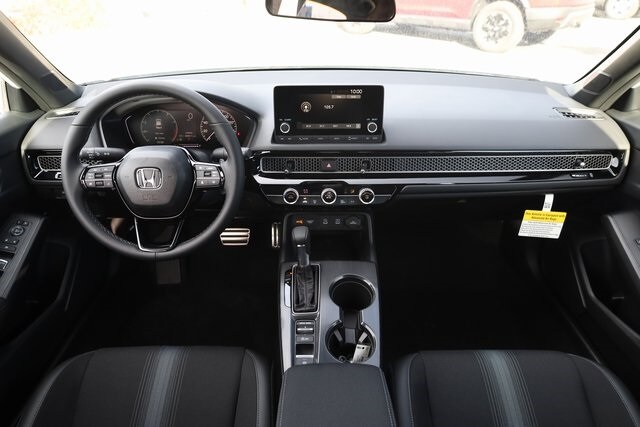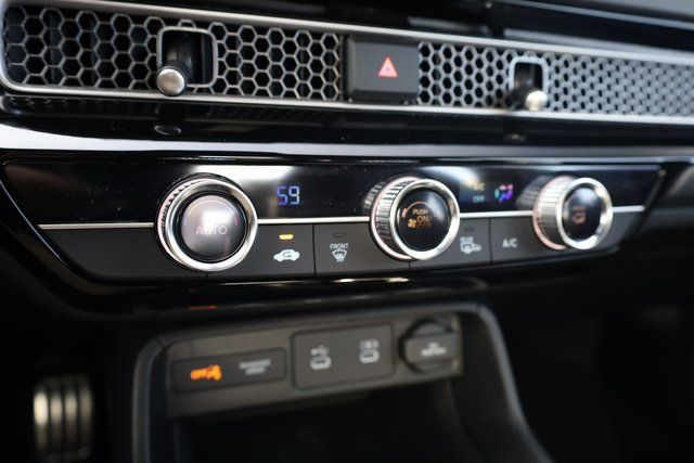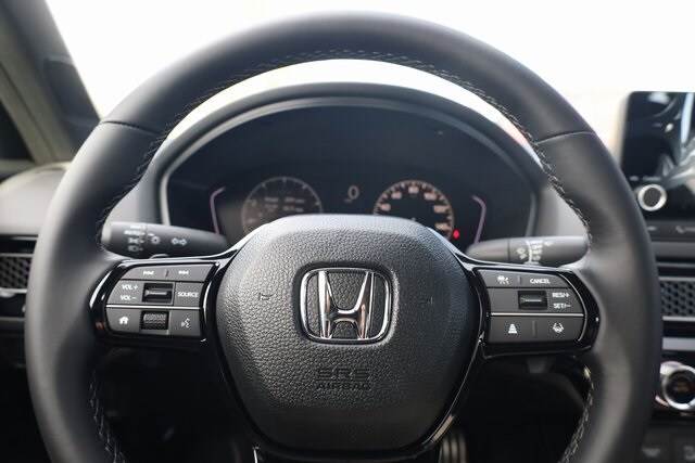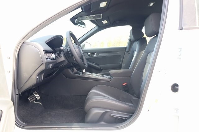This Civic is well equipped with Black Artificial Leather, 4-Wheel Disc Brakes, 8 Speakers, ABS brakes, Adaptive Cruise Control: Adaptive Cruise Control (ACC) with Low-Speed Follow, Air Conditioning, Alloy wheels, AM/FM radio, Apple CarPlay/Android Auto, Auto High-beam Headlights, Automatic temperature control, Blind Spot Information (BSI) System warning, Brake assist, Bumpers: body-color, Cloth/Leatherette Seating Surfaces, Delay-off headlights, Driver door bin, Driver vanity mirror, Dual front impact airbags, Dual front side impact airbags, Electronic Stability Control, Emergency communication system: HondaLink, Exterior Parking Camera Rear, Four wheel independent suspension, Front anti-roll bar, Front Bucket Seats, Front Center Armrest, Front reading lights, Fully automatic headlights, Heated door mirrors, Illuminated entry, Knee airbag, Leather Shift Knob, Leather steering wheel, Low tire pressure warning, Occupant sensing airbag, Outside temperature display, Overhead airbag, Panic alarm, Passenger door bin, Passenger vanity mirror, Power door mirrors, Power steering, Power windows, Radio data system, Radio: 180-Watt Audio System, Rear anti-roll bar, Rear seat center armrest, Rear side impact airbag, Rear window defroster, Remote keyless entry, Security system, Speed control, Speed-sensing steering, Split folding rear seat, Steering wheel mounted audio controls, Tachometer, Telescoping steering wheel, Tilt steering wheel, Traction control, Trip computer, and Wheels: 18" Gloss Black Alloy.
