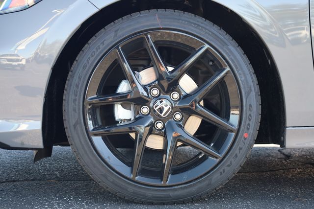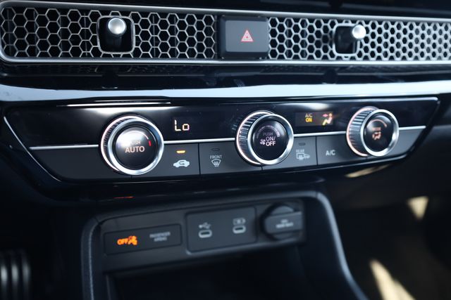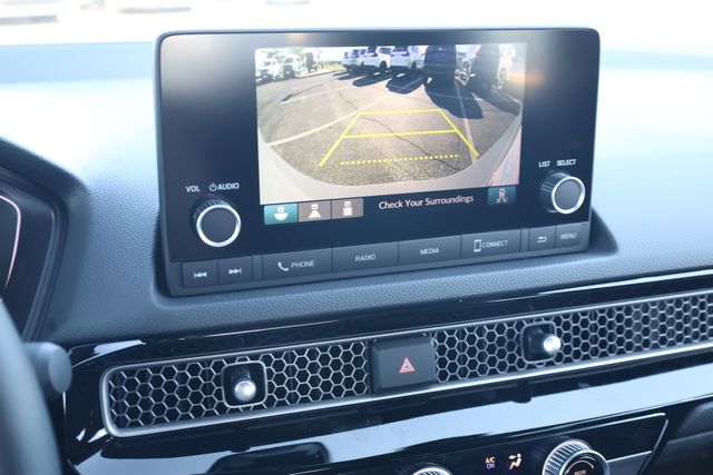 This Civic is well equipped with Black Artificial Leather, 4-Wheel Disc Brakes, 8 Speakers, ABS brakes, Adaptive Cruise Control: Adaptive Cruise Control (ACC) with Low-Speed Follow, Air Conditioning, Alloy wheels, AM/FM radio, Apple CarPlay/Android Auto, Auto High-beam Headlights, Automatic temperature control, Blind Spot Information (BSI) System warning, Brake assist, Bumpers: body-color, Cloth/Leatherette Seating Surfaces, Delay-off headlights, Driver door bin, Driver vanity mirror, Dual front impact airbags, Dual front side impact airbags, Electronic Stability Control, Emergency communication system: HondaLink, Exterior Parking Camera Rear, Four wheel independent suspension, Front anti-roll bar, Front Bucket Seats, Front Center Armrest, Front reading lights, Fully automatic headlights, Heated door mirrors, Illuminated entry, Knee airbag, Leather Shift Knob, Leather steering wheel, Low tire pressure warning, Occupant sensing airbag, Outside temperature display, Overhead airbag, Panic alarm, Passenger door bin, Passenger vanity mirror, Power door mirrors, Power steering, Power windows, Radio data system, Radio: 180-Watt Audio System, Rear anti-roll bar, Rear seat center armrest, Rear side impact airbag, Rear window defroster, Remote keyless entry, Security system, Speed control, Speed-sensing steering, Split folding rear seat, Steering wheel mounted audio controls, Tachometer, Telescoping steering wheel, Tilt steering wheel, Traction control, Trip computer, and Wheels: 18" Gloss Black Alloy.