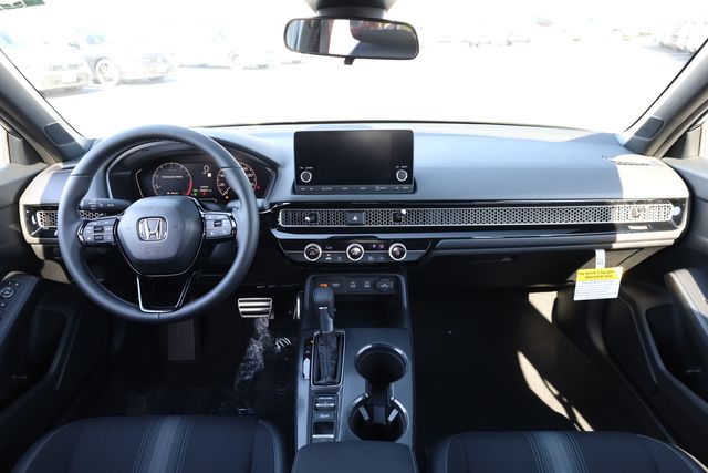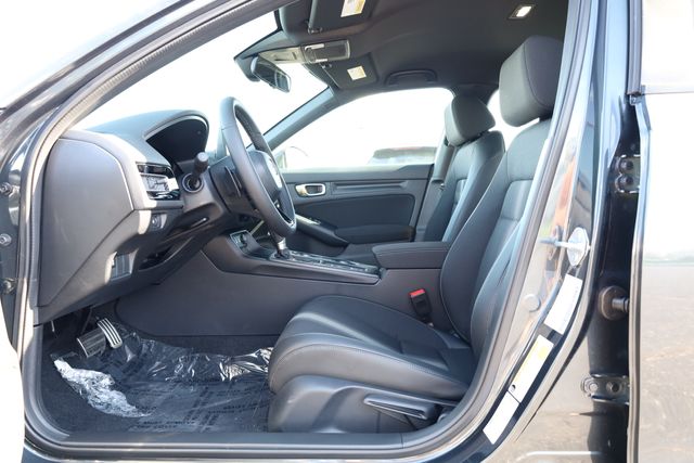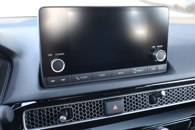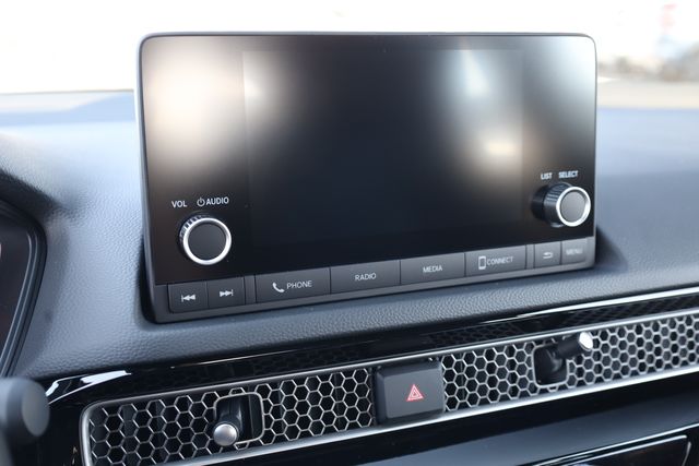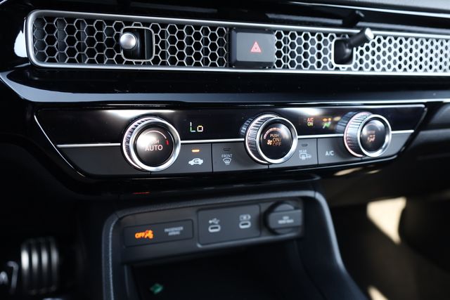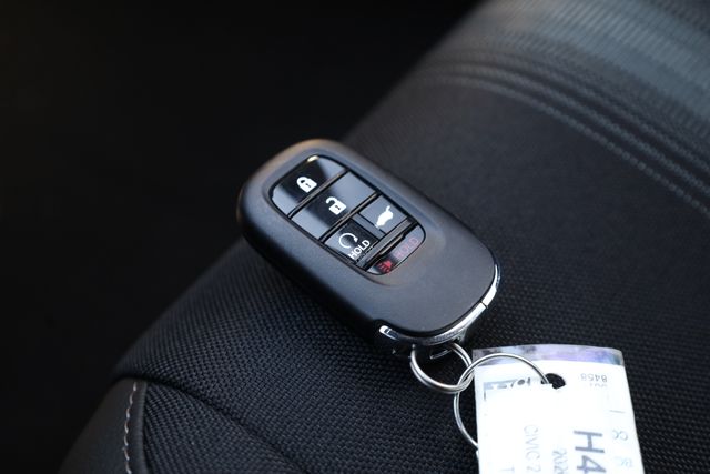 This Civic is well equipped with Black Artificial Leather, 4-Wheel Disc Brakes, 8 Speakers, ABS brakes, Adaptive Cruise Control: Adaptive Cruise Control (ACC) with Low-Speed Follow, Air Conditioning, Alloy wheels, AM/FM radio, Apple CarPlay/Android Auto, Auto High-beam Headlights, Automatic temperature control, Blind Spot Information (BSI) System warning, Brake assist, Bumpers: body-color, Cloth/Leatherette Seating Surfaces, Delay-off headlights, Driver door bin, Driver vanity mirror, Dual front impact airbags, Dual front side impact airbags, Electronic Stability Control, Emergency communication system: HondaLink, Exterior Parking Camera Rear, Four wheel independent suspension, Front anti-roll bar, Front Bucket Seats, Front Center Armrest, Front reading lights, Fully automatic headlights, Heated door mirrors, HondaLink, Illuminated entry, Knee airbag, Lane departure: Lane Keeping Assist System (LKAS) active, Leather Shift Knob, Low tire pressure warning, Occupant sensing airbag, Outside temperature display, Overhead airbag, Panic alarm, Passenger door bin, Passenger vanity mirror, Power door mirrors, Power steering, Power windows, Radio data system, Radio: 180-Watt Audio System, Rear anti-roll bar, Rear side impact airbag, Rear window defroster, Rear window wiper, Remote keyless entry, Security system, Speed control, Speed-sensing steering, Split folding rear seat, Steering wheel mounted audio controls, Tachometer, Telescoping steering wheel, Tilt steering wheel, Traction control, Trip computer, and Wheels: 18" Gloss Black Alloy.