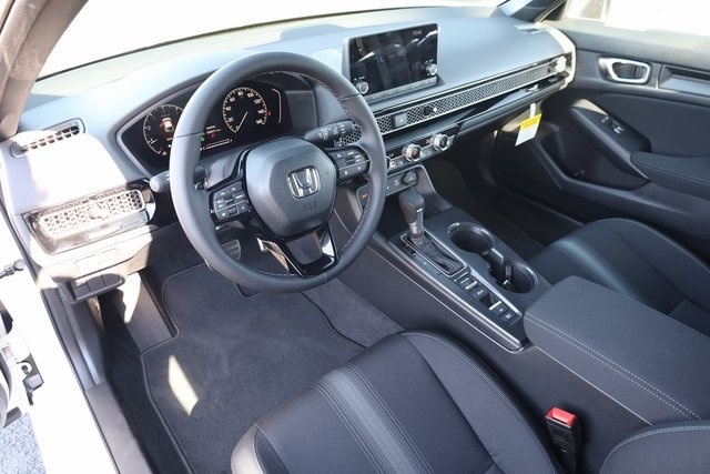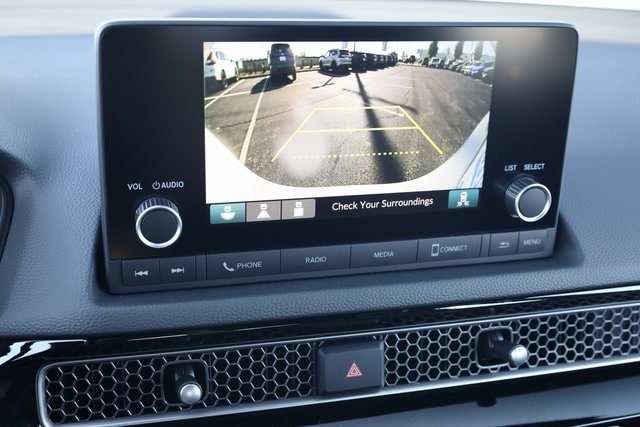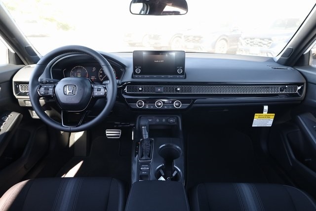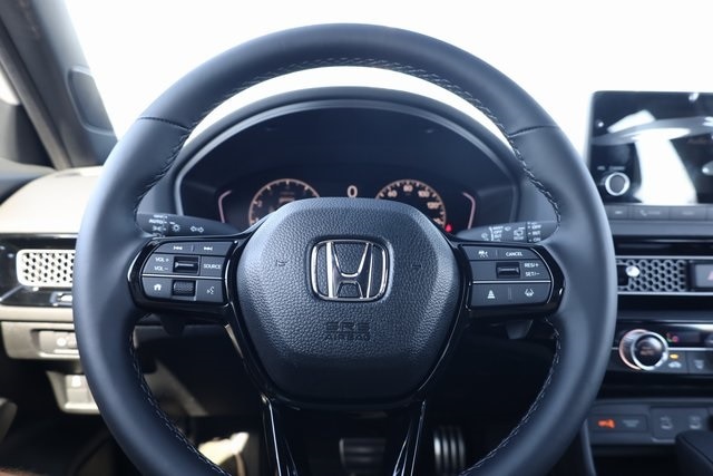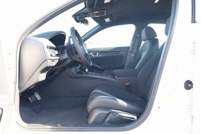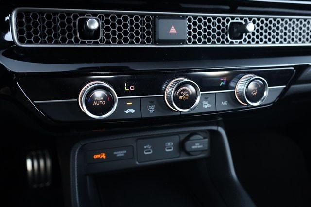 This Civic is well equipped with Black Artificial Leather, 4-Wheel Disc Brakes, 8 Speakers, ABS brakes, Adaptive Cruise Control: Adaptive Cruise Control (ACC) with Low-Speed Follow, Air Conditioning, Alloy wheels, AM/FM radio, Apple CarPlay/Android Auto, Auto High-beam Headlights, Automatic temperature control, Blind Spot Information (BSI) System warning, Brake assist, Bumpers: body-color, Cloth/Leatherette Seating Surfaces, Delay-off headlights, Driver door bin, Driver vanity mirror, Dual front impact airbags, Dual front side impact airbags, Electronic Stability Control, Emergency communication system: HondaLink, Exterior Parking Camera Rear, Four wheel independent suspension, Front anti-roll bar, Front Bucket Seats, Front Center Armrest, Front reading lights, Fully automatic headlights, Heated door mirrors, HondaLink, Illuminated entry, Knee airbag, Lane departure: Lane Keeping Assist System (LKAS) active, Leather Shift Knob, Low tire pressure warning, Occupant sensing airbag, Outside temperature display, Overhead airbag, Panic alarm, Passenger door bin, Passenger vanity mirror, Power door mirrors, Power steering, Power windows, Radio data system, Radio: 180-Watt Audio System, Rear anti-roll bar, Rear side impact airbag, Rear window defroster, Rear window wiper, Remote keyless entry, Security system, Speed control, Speed-sensing steering, Split folding rear seat, Steering wheel mounted audio controls, Tachometer, Telescoping steering wheel, Tilt steering wheel, Traction control, Trip computer, and Wheels: 18" Gloss Black Alloy.