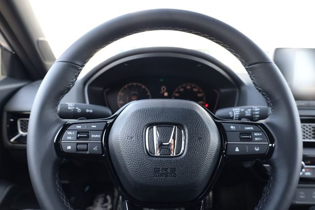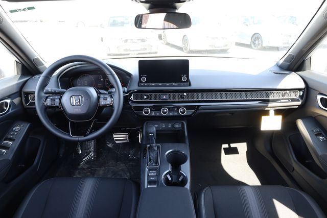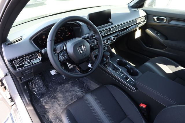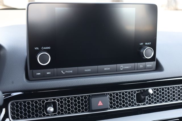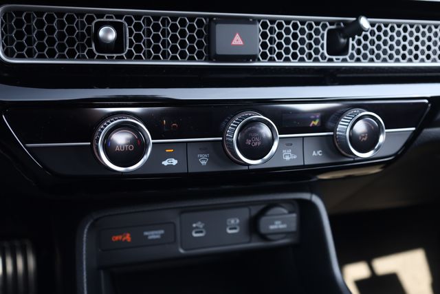 This Civic is well equipped with Black Artificial Leather, 4-Wheel Disc Brakes, 8 Speakers, ABS brakes, Adaptive Cruise Control: Adaptive Cruise Control (ACC) with Low-Speed Follow, Air Conditioning, Alloy wheels, AM/FM radio, Apple CarPlay/Android Auto, Auto High-beam Headlights, Automatic temperature control, Blind Spot Information (BSI) System warning, Brake assist, Bumpers: body-color, Cloth/Leatherette Seating Surfaces, Delay-off headlights, Driver door bin, Driver vanity mirror, Dual front impact airbags, Dual front side impact airbags, Electronic Stability Control, Emergency communication system: HondaLink, Exterior Parking Camera Rear, Four wheel independent suspension, Front anti-roll bar, Front Bucket Seats, Front Center Armrest, Front reading lights, Fully automatic headlights, Heated door mirrors, HondaLink, Illuminated entry, Knee airbag, Lane departure: Lane Keeping Assist System (LKAS) active, Leather Shift Knob, Low tire pressure warning, Occupant sensing airbag, Outside temperature display, Overhead airbag, Panic alarm, Passenger door bin, Passenger vanity mirror, Power door mirrors, Power steering, Power windows, Radio data system, Radio: 180-Watt Audio System, Rear anti-roll bar, Rear side impact airbag, Rear window defroster, Rear window wiper, Remote keyless entry, Security system, Speed control, Speed-sensing steering, Split folding rear seat, Steering wheel mounted audio controls, Tachometer, Telescoping steering wheel, Tilt steering wheel, Traction control, Trip computer, and Wheels: 18" Gloss Black Alloy.