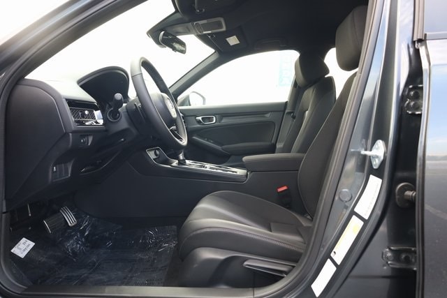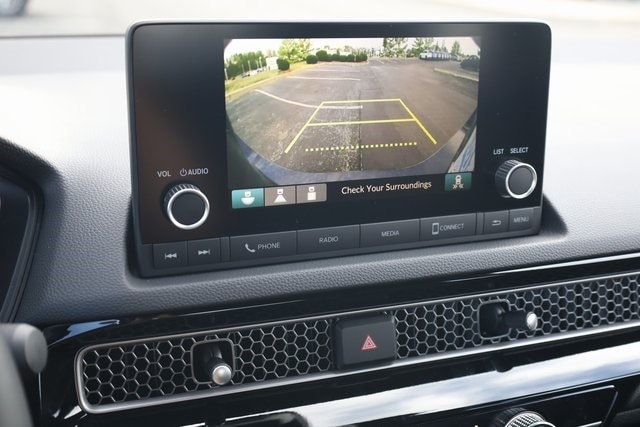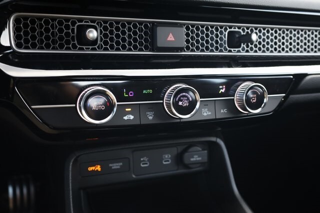 This Civic is well equipped with Black Artificial Leather, 4-Wheel Disc Brakes, 8 Speakers, ABS brakes, Adaptive Cruise Control: Adaptive Cruise Control (ACC) with Low-Speed Follow, Air Conditioning, Alloy wheels, AM/FM radio, Apple CarPlay/Android Auto, Auto High-beam Headlights, Automatic temperature control, Blind Spot Information (BSI) System warning, Brake assist, Bumpers: body-color, Cloth/Leatherette Seating Surfaces, Delay-off headlights, Driver door bin, Driver vanity mirror, Dual front impact airbags, Dual front side impact airbags, Electronic Stability Control, Emergency communication system: HondaLink, Exterior Parking Camera Rear, Four wheel independent suspension, Front anti-roll bar, Front Bucket Seats, Front Center Armrest, Front reading lights, Fully automatic headlights, Heated door mirrors, Illuminated entry, Knee airbag, Leather Shift Knob, Leather steering wheel, Low tire pressure warning, Occupant sensing airbag, Outside temperature display, Overhead airbag, Panic alarm, Passenger door bin, Passenger vanity mirror, Power door mirrors, Power steering, Power windows, Radio data system, Radio: 180-Watt Audio System, Rear anti-roll bar, Rear seat center armrest, Rear side impact airbag, Rear window defroster, Remote keyless entry, Security system, Speed control, Speed-sensing steering, Split folding rear seat, Steering wheel mounted audio controls, Tachometer, Telescoping steering wheel, Tilt steering wheel, Traction control, Trip computer, and Wheels: 18" Gloss Black Alloy.
