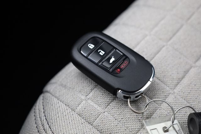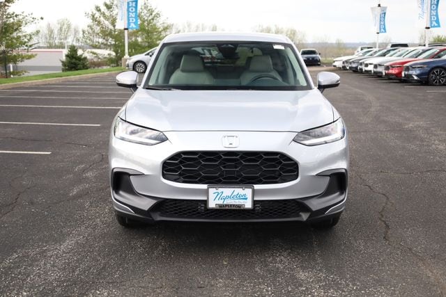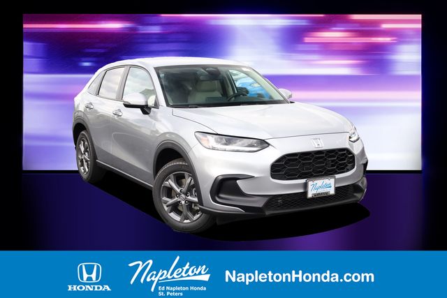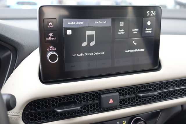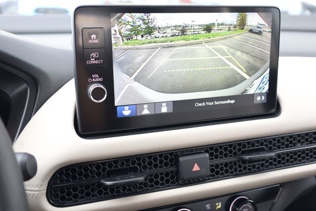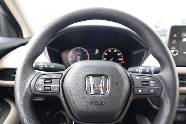 This HR-V is well equipped with 4 Speakers, 4-Wheel Disc Brakes, ABS brakes, Adaptive Cruise Control: Adaptive Cruise Control (ACC) with Low-Speed Follow, Air Conditioning, Alloy wheels, AM/FM radio, Apple CarPlay/Android Auto, Auto High-beam Headlights, Automatic temperature control, Brake assist, Bumpers: body-color, Cloth Seat Trim, Compass, Delay-off headlights, Driver door bin, Driver vanity mirror, Dual front impact airbags, Dual front side impact airbags, Electronic Stability Control, Exterior Parking Camera Rear, Four wheel independent suspension, Front anti-roll bar, Front Bucket Seats, Front Center Armrest, Front reading lights, Fully automatic headlights, Illuminated entry, Knee airbag, Low tire pressure warning, Occupant sensing airbag, Outside temperature display, Overhead airbag, Panic alarm, Passenger door bin, Passenger vanity mirror, Power door mirrors, Power steering, Power windows, Radio data system, Radio: 180-Watt Audio System with 4 Speakers, Rear anti-roll bar, Rear reading lights, Rear side impact airbag, Rear window defroster, Rear window wiper, Remote keyless entry, Security system, Speed control, Speed-sensing steering, Split folding rear seat, Spoiler, Steering wheel mounted audio controls, Tachometer, Telescoping steering wheel, Tilt steering wheel, Traction control, Trip computer, Variably intermittent wipers, and Wheels: 17" Pewter Gray Alloy.