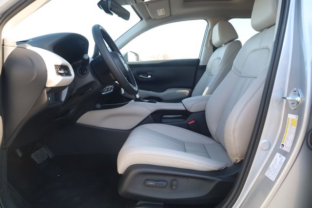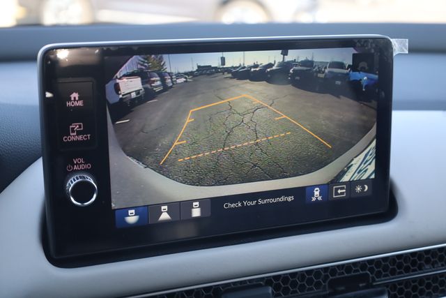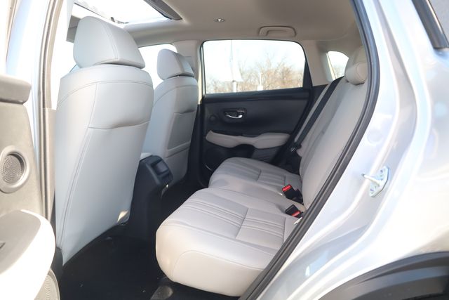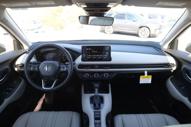 This HR-V is well equipped with 18" Machine-Finished Alloy Wheels, 4-Wheel Disc Brakes, 8 Speakers, ABS brakes, Adaptive Cruise Control: Adaptive Cruise Control (ACC) with Low-Speed Follow, Air Conditioning, Alloy wheels, AM/FM radio, Apple CarPlay/Android Auto, Auto High-beam Headlights, Auto-dimming Rear-View mirror, Automatic temperature control, Blind Spot Information (BSI) System warning, Brake assist, Bumpers: body-color, Compass, Delay-off headlights, Driver door bin, Driver vanity mirror, Dual front impact airbags, Dual front side impact airbags, Electronic Stability Control, Exterior Parking Camera Rear, Four wheel independent suspension, Front anti-roll bar, Front Bucket Seats, Front Center Armrest, Front dual zone A/C, Front reading lights, Fully automatic headlights, Heated door mirrors, Heated Front Bucket Seats, Heated front seats, Illuminated entry, Knee airbag, Leather Shift Knob, Leather steering wheel, Leather-Trimmed Seats, Low tire pressure warning, Occupant sensing airbag, Outside temperature display, Overhead airbag, Panic alarm, Passenger door bin, Passenger vanity mirror, Power door mirrors, Power driver seat, Power moonroof, Power steering, Power windows, Radio data system, Radio: 180-Watt Audio System with 8 Speakers, Rear anti-roll bar, Rear reading lights, Rear side impact airbag, Rear window defroster, Rear window wiper, Remote keyless entry, Security system, Speed control, Speed-sensing steering, Split folding rear seat, Spoiler, Steering wheel mounted audio controls, Tachometer, Telescoping steering wheel, Tilt steering wheel, Traction control, Trip computer, Turn signal indicator mirrors, and Variably intermittent wipers.
