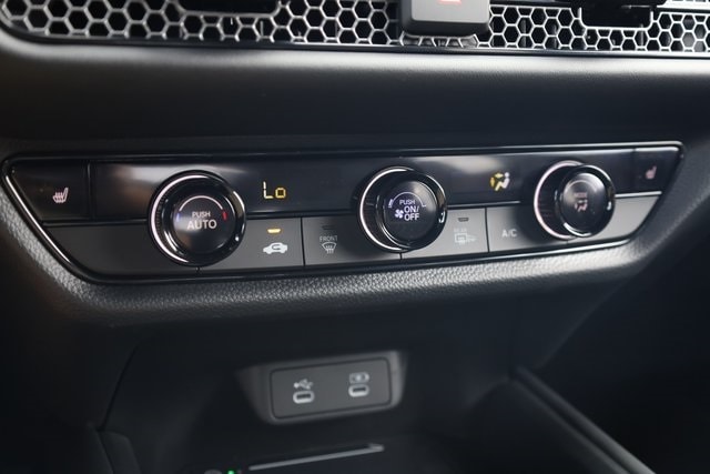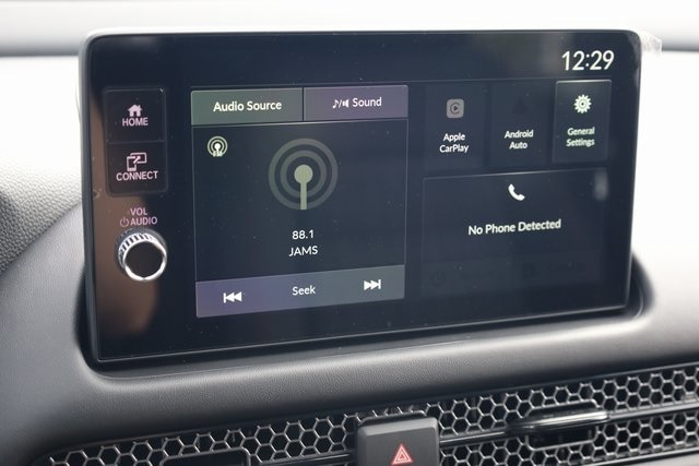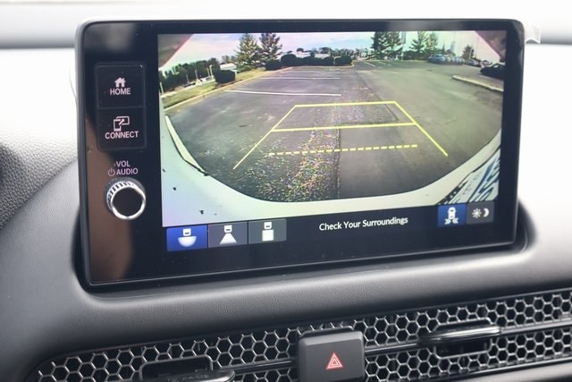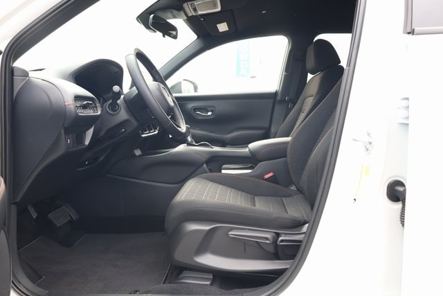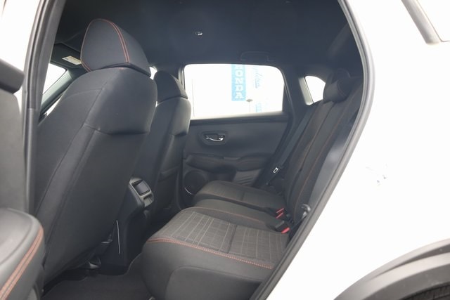 This HR-V is well equipped with 4-Wheel Disc Brakes, 6 Speakers, ABS brakes, Adaptive Cruise Control: Adaptive Cruise Control (ACC) with Low-Speed Follow, Air Conditioning, Alloy wheels, AM/FM radio, Apple CarPlay/Android Auto, Auto High-beam Headlights, Automatic temperature control, Blind Spot Information (BSI) System warning, Brake assist, Bumpers: body-color, Cloth Seat Trim, Compass, Delay-off headlights, Driver door bin, Driver vanity mirror, Dual front impact airbags, Dual front side impact airbags, Electronic Stability Control, Exterior Parking Camera Rear, Four wheel independent suspension, Front anti-roll bar, Front Bucket Seats, Front Center Armrest, Front reading lights, Fully automatic headlights, Heated door mirrors, Heated Front Bucket Seats, Heated front seats, Illuminated entry, Knee airbag, Low tire pressure warning, Occupant sensing airbag, Outside temperature display, Overhead airbag, Panic alarm, Passenger door bin, Passenger vanity mirror, Power door mirrors, Power steering, Power windows, Radio data system, Radio: 180-Watt Audio System w/6 Speakers, Rear anti-roll bar, Rear reading lights, Rear side impact airbag, Rear window defroster, Rear window wiper, Remote keyless entry, Security system, Speed control, Speed-sensing steering, Split folding rear seat, Spoiler, Steering wheel mounted audio controls, Tachometer, Telescoping steering wheel, Tilt steering wheel, Traction control, Trip computer, Turn signal indicator mirrors, Variably intermittent wipers, and Wheels: 18" Gloss Black Alloy.