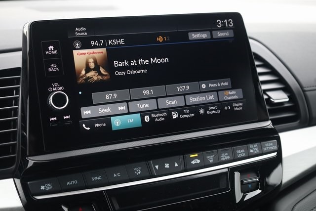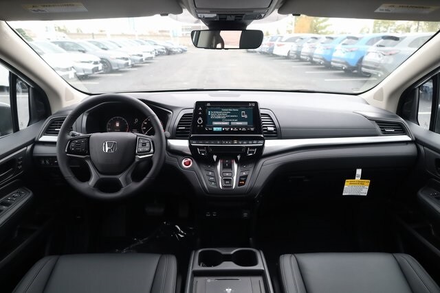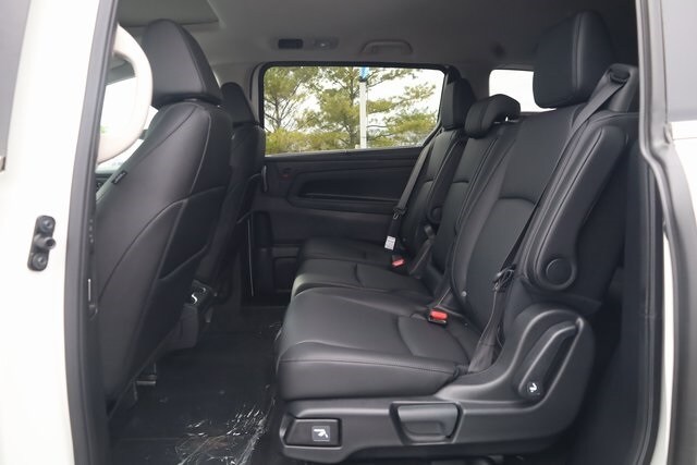 This Odyssey is well equipped with 18" Machine-Finished Alloy Wheels, 3rd row seats: split-bench, 4-Wheel Disc Brakes, 7 Speakers, ABS brakes, Adaptive Cruise Control: Adaptive Cruise Control (ACC) with Low-Speed Follow, Air Conditioning, Alloy wheels, AM/FM radio: SiriusXM, Anti-whiplash front head restraints, Apple CarPlay/Android Auto, Auto High-beam Headlights, Auto-dimming Rear-View mirror, Automatic temperature control, Blind Spot Information (BSI) System warning, Brake assist, Bumpers: body-color, Delay-off headlights, Driver door bin, Driver vanity mirror, Driver's Seat Mounted Armrest, Dual front impact airbags, Dual front side impact airbags, Electronic Stability Control, Exterior Parking Camera Rear, Four wheel independent suspension, Front anti-roll bar, Front Bucket Seats, Front dual zone A/C, Front fog lights, Front reading lights, Fully automatic headlights, Garage door transmitter: HomeLink, Heated door mirrors, Heated Front Bucket Seats, Heated front seats, Illuminated entry, Knee airbag, Lane departure: Lane Keeping Assist System (LKAS) active, Leather steering wheel, Leather-Trimmed Seats, Low tire pressure warning, Memory seat, Occupant sensing airbag, Outside temperature display, Overhead airbag, Overhead console, Panic alarm, Passenger door bin, Passenger seat mounted armrest, Passenger vanity mirror, Power door mirrors, Power driver seat, Power Liftgate, Power moonroof, Power passenger seat, Power steering, Power windows, Radio data system, Radio: 160-Watt AM/FM/HD/SiriusXM Audio System, Rear air conditioning, Rear anti-roll bar, Rear reading lights, Rear seat center armrest, Rear window defroster, Rear window wiper, Reclining 3rd row seat, Remote keyless entry, Security system, Speed control, Speed-sensing steering, Speed-Sensitive Wipers, Split folding rear seat, Spoiler, Steering wheel mounted audio controls, Tachometer, Telescoping steering wheel, Tilt steering wheel, Traction control, Trip computer, Turn signal indicator mirrors, and Variably intermittent wipers.
