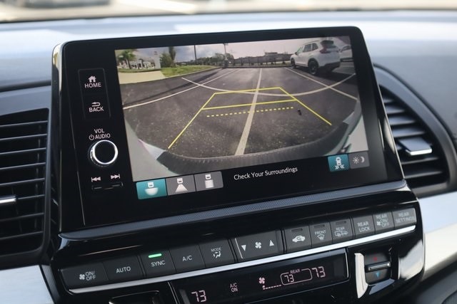 This Odyssey is well equipped with 18" Machine-Finished Alloy Wheels, 3rd row seats: split-bench, 4-Wheel Disc Brakes, 7 Speakers, ABS brakes, Adaptive Cruise Control: Adaptive Cruise Control (ACC) with Low-Speed Follow, Air Conditioning, Alloy wheels, AM/FM radio: SiriusXM, Anti-whiplash front head restraints, Apple CarPlay/Android Auto, Auto High-beam Headlights, Auto-dimming Rear-View mirror, Automatic temperature control, Blind Spot Information (BSI) System warning, Brake assist, Bumpers: body-color, Delay-off headlights, Driver door bin, Driver vanity mirror, Driver's Seat Mounted Armrest, Dual front impact airbags, Dual front side impact airbags, Electronic Stability Control, Exterior Parking Camera Rear, Four wheel independent suspension, Front anti-roll bar, Front Bucket Seats, Front dual zone A/C, Front fog lights, Front reading lights, Fully automatic headlights, Garage door transmitter: HomeLink, Heated door mirrors, Heated Front Bucket Seats, Heated front seats, Illuminated entry, Knee airbag, Lane departure: Lane Keeping Assist System (LKAS) active, Leather steering wheel, Leather-Trimmed Seats, Low tire pressure warning, Memory seat, Occupant sensing airbag, Outside temperature display, Overhead airbag, Overhead console, Panic alarm, Passenger door bin, Passenger seat mounted armrest, Passenger vanity mirror, Power door mirrors, Power driver seat, Power Liftgate, Power moonroof, Power passenger seat, Power steering, Power windows, Radio data system, Radio: 160-Watt AM/FM/HD/SiriusXM Audio System, Rear air conditioning, Rear anti-roll bar, Rear reading lights, Rear seat center armrest, Rear window defroster, Rear window wiper, Reclining 3rd row seat, Remote keyless entry, Security system, Speed control, Speed-sensing steering, Speed-Sensitive Wipers, Split folding rear seat, Spoiler, Steering wheel mounted audio controls, Tachometer, Telescoping steering wheel, Tilt steering wheel, Traction control, Trip computer, Turn signal indicator mirrors, and Variably intermittent wipers.