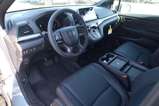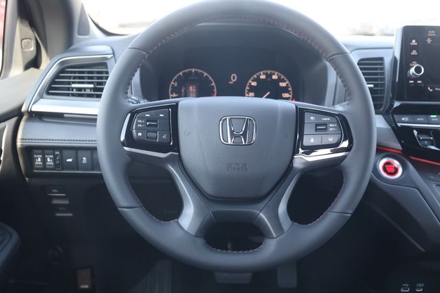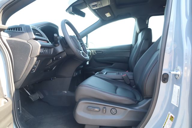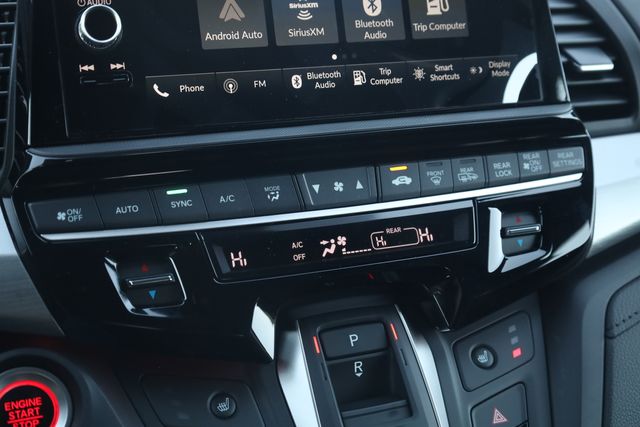 This Odyssey is well equipped with 3rd row seats: split-bench, 4-Wheel Disc Brakes, 7 Speakers, ABS brakes, Adaptive Cruise Control: Adaptive Cruise Control (ACC) with Low-Speed Follow, Air Conditioning, Alloy wheels, AM/FM radio: SiriusXM, Anti-whiplash front head restraints, Apple CarPlay/Android Auto, Auto High-beam Headlights, Auto-dimming Rear-View mirror, Automatic temperature control, Blind Spot Information (BSI) System warning, Brake assist, Bumpers: body-color, Delay-off headlights, Driver door bin, Driver vanity mirror, Driver's Seat Mounted Armrest, Dual front impact airbags, Dual front side impact airbags, Electronic Stability Control, Exterior Parking Camera Rear, Four wheel independent suspension, Front anti-roll bar, Front Bucket Seats, Front dual zone A/C, Front fog lights, Front reading lights, Fully automatic headlights, Garage door transmitter: HomeLink, Heated door mirrors, Heated Front Bucket Seats, Heated front seats, Illuminated entry, Knee airbag, Lane departure: Lane Keeping Assist System (LKAS) active, Leather steering wheel, Leather-Trimmed Seats, Low tire pressure warning, Memory seat, Occupant sensing airbag, Outside temperature display, Overhead airbag, Overhead console, Panic alarm, Passenger door bin, Passenger seat mounted armrest, Passenger vanity mirror, Power door mirrors, Power driver seat, Power Liftgate, Power moonroof, Power passenger seat, Power steering, Power windows, Radio data system, Radio: 160-Watt AM/FM/HD/SiriusXM Audio System, Rear air conditioning, Rear anti-roll bar, Rear reading lights, Rear seat center armrest, Rear window defroster, Rear window wiper, Reclining 3rd row seat, Remote keyless entry, Security system, Speed control, Speed-sensing steering, Speed-Sensitive Wipers, Split folding rear seat, Spoiler, Steering wheel mounted audio controls, Tachometer, Telescoping steering wheel, Tilt steering wheel, Traction control, Trip computer, Turn signal indicator mirrors, Variably intermittent wipers, and Wheels: 19" Gloss Black Alloy.