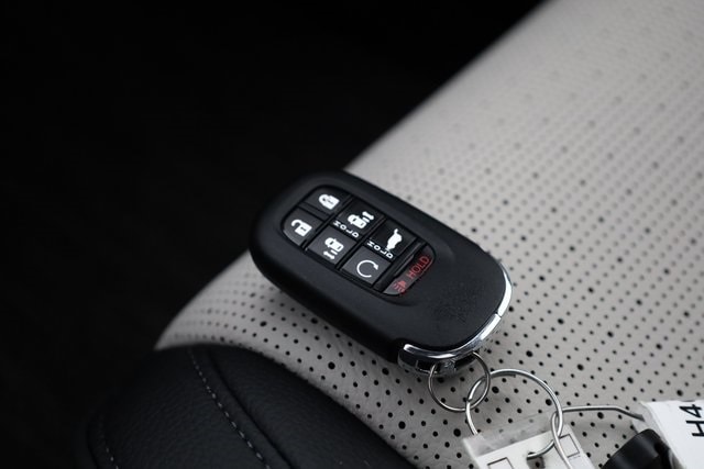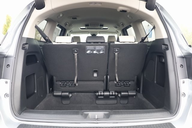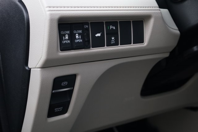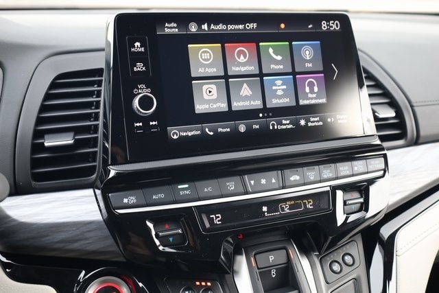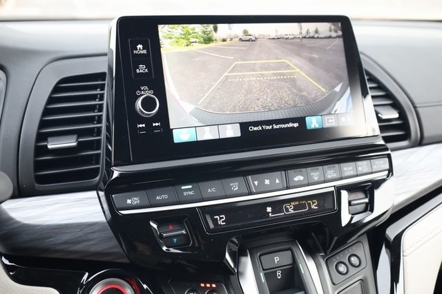 This Odyssey is well equipped with 11 Speakers, 3rd row seats: split-bench, 4-Wheel Disc Brakes, ABS brakes, Adaptive Cruise Control: Adaptive Cruise Control (ACC) with Low-Speed Follow, Air Conditioning, Alloy wheels, AM/FM radio: SiriusXM, Anti-whiplash front head restraints, Apple CarPlay/Android Auto, Auto High-beam Headlights, Auto-dimming door mirrors, Auto-dimming Rear-View mirror, Automatic temperature control, Blind Spot Information (BSI) System warning, Brake assist, Bumpers: body-color, Compass, Delay-off headlights, Driver door bin, Driver vanity mirror, Driver's Seat Mounted Armrest, Dual front impact airbags, Dual front side impact airbags, Electronic Stability Control, Emergency communication system: HondaLink, Exterior Parking Camera Rear, Four wheel independent suspension, Front anti-roll bar, Front Bucket Seats, Front dual zone A/C, Front fog lights, Front reading lights, Fully automatic headlights, Garage door transmitter: HomeLink, Heated & Ventilated Front Bucket Seats, Heated door mirrors, Heated front seats, Heated steering wheel, Illuminated entry, Knee airbag, Lane departure: Lane Keeping Assist System (LKAS) active, Leather steering wheel, Low tire pressure warning, Memory seat, Navigation system: Honda Satellite-Linked Navigation System, Occupant sensing airbag, Outside temperature display, Overhead airbag, Overhead console, Panic alarm, Passenger door bin, Passenger seat mounted armrest, Passenger vanity mirror, Perforated Leather-Trimmed Seats w/Piping, Power door mirrors, Power driver seat, Power Liftgate, Power moonroof, Power passenger seat, Power steering, Power windows, Radio data system, Radio: 500-Watt AM/FM/HD Premium Audio System, Rain sensing wipers, Rear air conditioning, Rear anti-roll bar, Rear audio controls, Rear reading lights, Rear seat center armrest, Rear window defroster, Rear window wiper, Reclining 3rd row seat, Remote keyless entry, Security system, Speed control, Speed-sensing steering, Speed-Sensitive Wipers, Split folding rear seat, Spoiler, Steering wheel mounted audio controls, Tachometer, Telescoping steering wheel, Tilt steering wheel, Traction control, Trip computer, Turn signal indicator mirrors, Variably intermittent wipers, Ventilated front seats, and Wheels: 19" Machine-Finished Alloy.