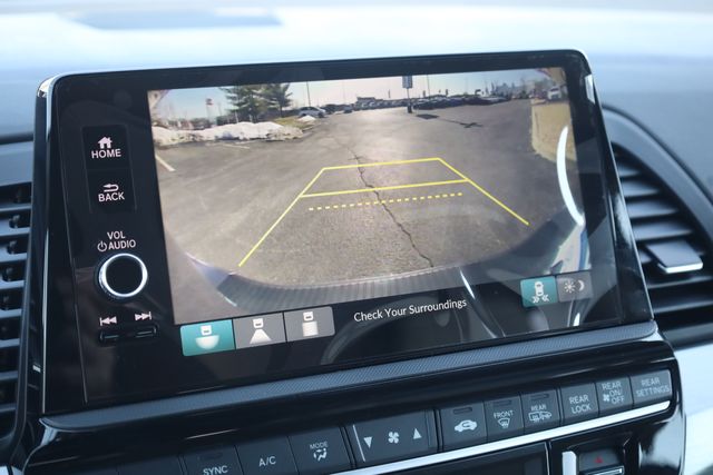 This Odyssey is well equipped with 18" Machine-Finished Alloy Wheels, 3rd row seats: split-bench, 4-Wheel Disc Brakes, 7 Speakers, ABS brakes, Adaptive Cruise Control: Adaptive Cruise Control (ACC) with Low-Speed Follow, Air Conditioning, Alloy wheels, AM/FM radio: SiriusXM, Anti-whiplash front head restraints, Apple CarPlay/Android Auto, Auto High-beam Headlights, Auto-dimming Rear-View mirror, Automatic temperature control, Blind Spot Information (BSI) System warning, Brake assist, Bumpers: body-color, Delay-off headlights, Driver door bin, Driver vanity mirror, Driver's Seat Mounted Armrest, Dual front impact airbags, Dual front side impact airbags, Electronic Stability Control, Exterior Parking Camera Rear, Four wheel independent suspension, Front anti-roll bar, Front Bucket Seats, Front dual zone A/C, Front fog lights, Front reading lights, Fully automatic headlights, Garage door transmitter: HomeLink, Heated door mirrors, Heated Front Bucket Seats, Heated front seats, Illuminated entry, Knee airbag, Lane departure: Lane Keeping Assist System (LKAS) active, Leather steering wheel, Leather-Trimmed Seats, Low tire pressure warning, Memory seat, Occupant sensing airbag, Outside temperature display, Overhead airbag, Overhead console, Panic alarm, Passenger door bin, Passenger seat mounted armrest, Passenger vanity mirror, Power door mirrors, Power driver seat, Power Liftgate, Power moonroof, Power passenger seat, Power steering, Power windows, Radio data system, Radio: 160-Watt AM/FM/HD/SiriusXM Audio System, Rear air conditioning, Rear anti-roll bar, Rear reading lights, Rear seat center armrest, Rear window defroster, Rear window wiper, Reclining 3rd row seat, Remote keyless entry, Security system, Speed control, Speed-sensing steering, Speed-Sensitive Wipers, Split folding rear seat, Spoiler, Steering wheel mounted audio controls, Tachometer, Telescoping steering wheel, Tilt steering wheel, Traction control, Trip computer, Turn signal indicator mirrors, and Variably intermittent wipers.