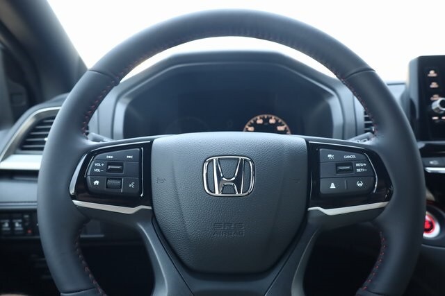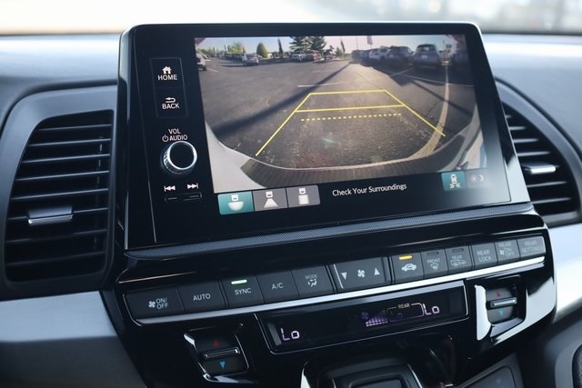 This Odyssey is well equipped with 3rd row seats: split-bench, 4-Wheel Disc Brakes, 7 Speakers, ABS brakes, Adaptive Cruise Control: Adaptive Cruise Control (ACC) with Low-Speed Follow, Air Conditioning, Alloy wheels, AM/FM radio: SiriusXM, Anti-whiplash front head restraints, Apple CarPlay/Android Auto, Auto High-beam Headlights, Auto-dimming Rear-View mirror, Automatic temperature control, Blind Spot Information (BSI) System warning, Brake assist, Bumpers: body-color, Delay-off headlights, Driver door bin, Driver vanity mirror, Driver's Seat Mounted Armrest, Dual front impact airbags, Dual front side impact airbags, Electronic Stability Control, Exterior Parking Camera Rear, Four wheel independent suspension, Front anti-roll bar, Front Bucket Seats, Front dual zone A/C, Front fog lights, Front reading lights, Fully automatic headlights, Garage door transmitter: HomeLink, Heated door mirrors, Heated Front Bucket Seats, Heated front seats, Illuminated entry, Knee airbag, Lane departure: Lane Keeping Assist System (LKAS) active, Leather steering wheel, Leather-Trimmed Seats, Low tire pressure warning, Memory seat, Occupant sensing airbag, Outside temperature display, Overhead airbag, Overhead console, Panic alarm, Passenger door bin, Passenger seat mounted armrest, Passenger vanity mirror, Power door mirrors, Power driver seat, Power Liftgate, Power moonroof, Power passenger seat, Power steering, Power windows, Radio data system, Radio: 160-Watt AM/FM/HD/SiriusXM Audio System, Rear air conditioning, Rear anti-roll bar, Rear reading lights, Rear seat center armrest, Rear window defroster, Rear window wiper, Reclining 3rd row seat, Remote keyless entry, Security system, Speed control, Speed-sensing steering, Speed-Sensitive Wipers, Split folding rear seat, Spoiler, Steering wheel mounted audio controls, Tachometer, Telescoping steering wheel, Tilt steering wheel, Traction control, Trip computer, Turn signal indicator mirrors, Variably intermittent wipers, and Wheels: 19" Gloss Black Alloy.