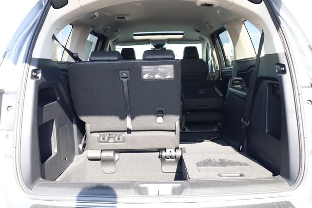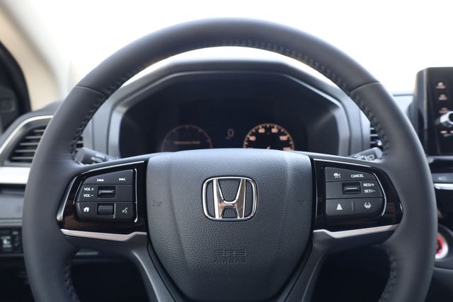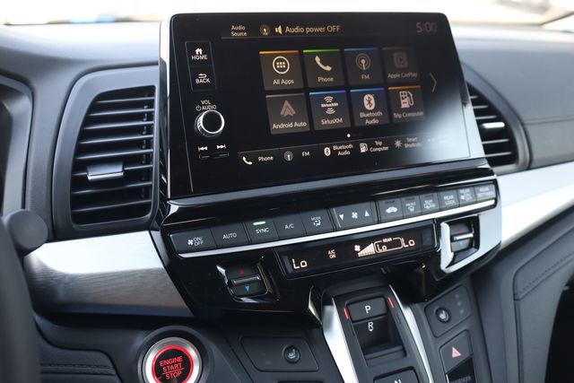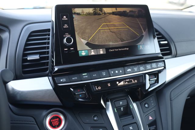 This Odyssey is well equipped with 18" Machine-Finished Alloy Wheels, 3rd row seats: split-bench, 4-Wheel Disc Brakes, 7 Speakers, ABS brakes, Adaptive Cruise Control: Adaptive Cruise Control (ACC) with Low-Speed Follow, Air Conditioning, Alloy wheels, AM/FM radio: SiriusXM, Anti-whiplash front head restraints, Apple CarPlay/Android Auto, Auto High-beam Headlights, Auto-dimming Rear-View mirror, Automatic temperature control, Blind Spot Information (BSI) System warning, Brake assist, Bumpers: body-color, Delay-off headlights, Driver door bin, Driver vanity mirror, Driver's Seat Mounted Armrest, Dual front impact airbags, Dual front side impact airbags, Electronic Stability Control, Exterior Parking Camera Rear, Four wheel independent suspension, Front anti-roll bar, Front Bucket Seats, Front dual zone A/C, Front fog lights, Front reading lights, Fully automatic headlights, Garage door transmitter: HomeLink, Heated door mirrors, Heated Front Bucket Seats, Heated front seats, Illuminated entry, Knee airbag, Lane departure: Lane Keeping Assist System (LKAS) active, Leather steering wheel, Leather-Trimmed Seats, Low tire pressure warning, Memory seat, Occupant sensing airbag, Outside temperature display, Overhead airbag, Overhead console, Panic alarm, Passenger door bin, Passenger seat mounted armrest, Passenger vanity mirror, Power door mirrors, Power driver seat, Power Liftgate, Power moonroof, Power passenger seat, Power steering, Power windows, Radio data system, Radio: 160-Watt AM/FM/HD/SiriusXM Audio System, Rear air conditioning, Rear anti-roll bar, Rear reading lights, Rear seat center armrest, Rear window defroster, Rear window wiper, Reclining 3rd row seat, Remote keyless entry, Security system, Speed control, Speed-sensing steering, Speed-Sensitive Wipers, Split folding rear seat, Spoiler, Steering wheel mounted audio controls, Tachometer, Telescoping steering wheel, Tilt steering wheel, Traction control, Trip computer, Turn signal indicator mirrors, and Variably intermittent wipers.