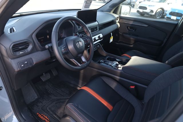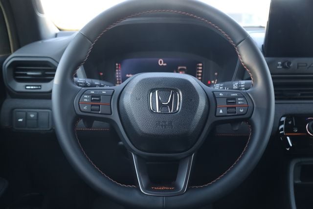 This Passport is well equipped with 4-Wheel Disc Brakes, 9 Speakers, ABS brakes, Adaptive Cruise Control: Adaptive Cruise Control (ACC) with Low-Speed Follow, Air Conditioning, Alloy wheels, Apple CarPlay/Android Auto, Auto High-beam Headlights, Auto-dimming Rear-View mirror, Automatic temperature control, Blind Spot Information (BSI) System warning, Brake assist, Compass, Delay-off headlights, Driver door bin, Driver vanity mirror, Driver's Seat Mounted Armrest, Dual front impact airbags, Dual front side impact airbags, Electronic Stability Control, Emergency communication system: HondaLink, Exterior Parking Camera Rear, Four wheel independent suspension, Front anti-roll bar, Front Bucket Seats, Front Center Armrest, Front dual zone A/C, Front fog lights, Front reading lights, Fully automatic headlights, Heated door mirrors, Heated Front Bucket Seats, Heated front seats, HVAC memory, Illuminated entry, Knee airbag, Lane departure: Lane Keeping Assist System (LKAS) active, Leather steering wheel, Low tire pressure warning, Memory seat, Navigation system: Google Maps, Occupant sensing airbag, Outside temperature display, Overhead airbag, Overhead console, Panic alarm, Passenger door bin, Passenger seat mounted armrest, Passenger vanity mirror, Power door mirrors, Power driver seat, Power Liftgate, Power moonroof, Power passenger seat, Power steering, Power windows, Radio data system, Rear air conditioning, Rear anti-roll bar, Rear reading lights, Rear seat center armrest, Rear window defroster, Rear window wiper, Remote keyless entry, Security system, Speed control, Speed-sensing steering, Split folding rear seat, Spoiler, Steering wheel mounted audio controls, Tachometer, Telescoping steering wheel, Tilt steering wheel, Traction control, Trip computer, Turn signal indicator mirrors, and Variably intermittent wipers.